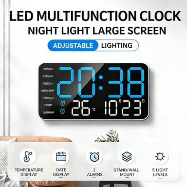 Large LED display shows the time. date. day of the week. and indoor temperature. Everything you need. clear and easy to read. - 🛋️ Perfect for any room