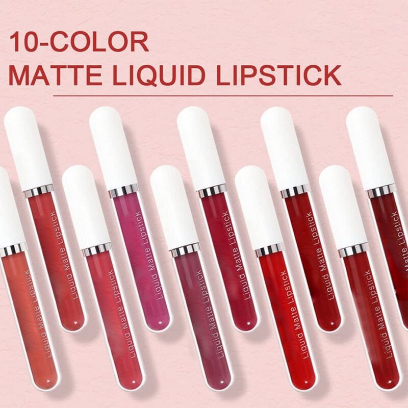 - 10 Colors Velvet Liquid Lip Stick Set. full-size lip gloss of the most popular colors. Charming matte. long lasting and waterproof. Not stick cup. do not fade.