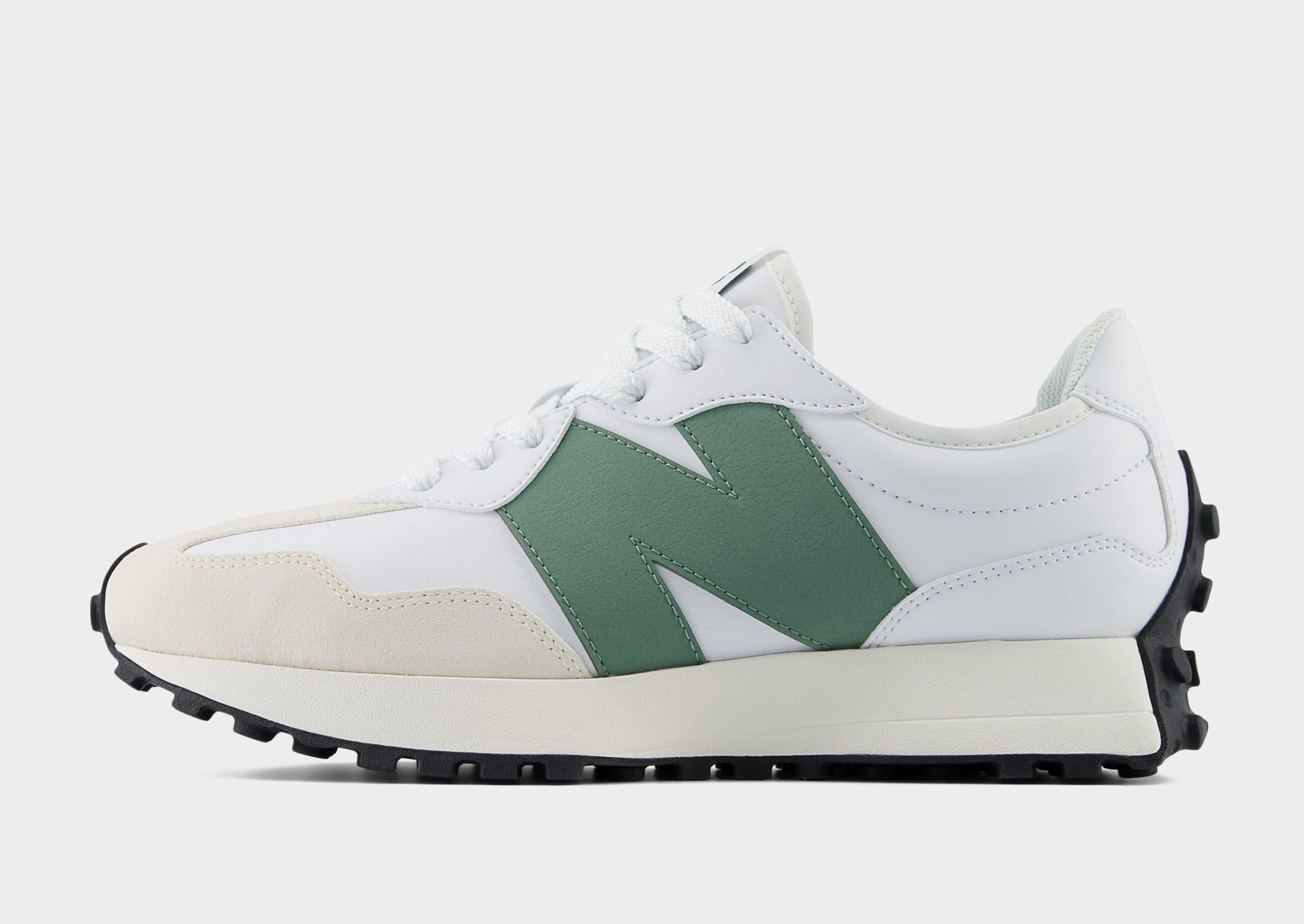 The New Balance 327 sneaker combines retro-inspired style with modern comfort. making it a versatile addition to any wardrobe. Featuring a mix of suede and nylon in the upper. the 327 offers durability and breathability. while its sleek design provides a stylish. streamlined look. The EVA midsole delivers cushioning for added comfort. and the rubber outsole ensures excellent traction and support. The standout design includes a bold. oversized New Balance N logo on the side. giving it a distinctive and trendy look. Perfect for casual wear or light activity. the New Balance 327 Women’s sneaker is both fashionable and functional. ideal for everyday use.