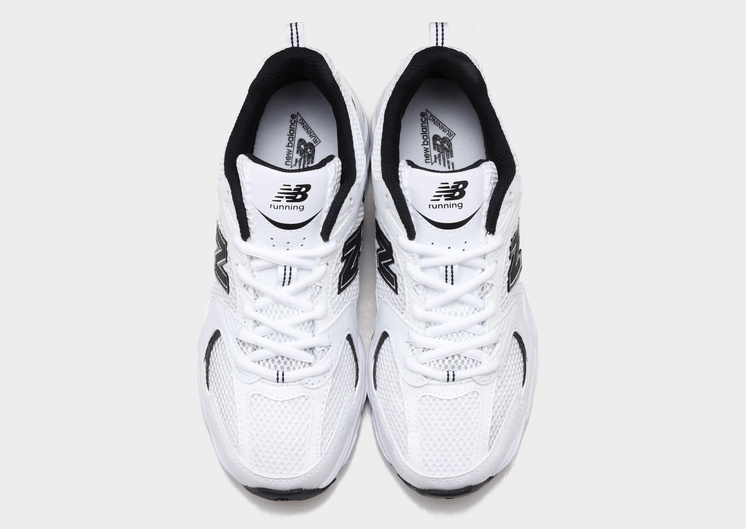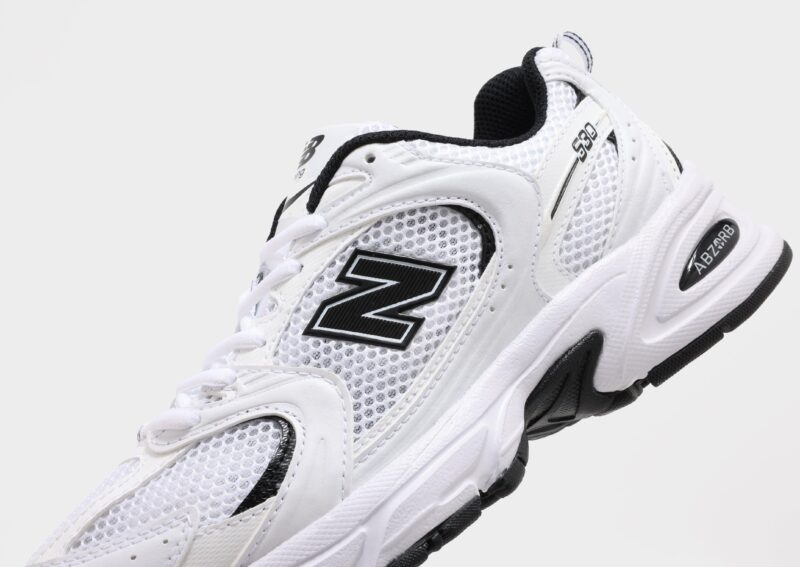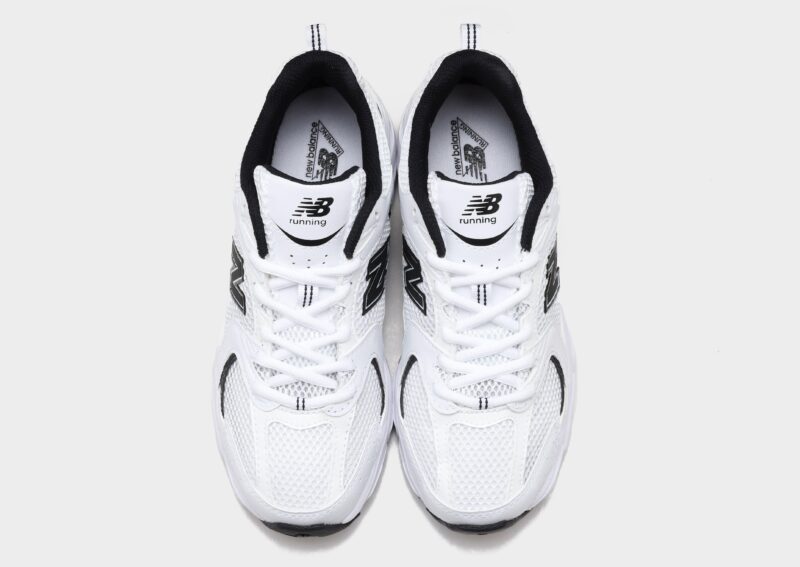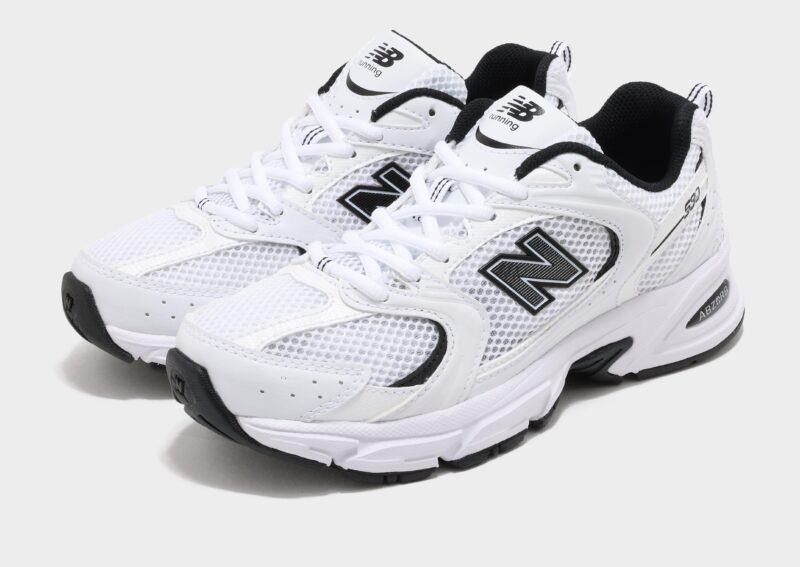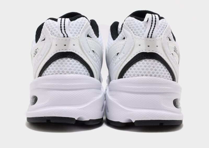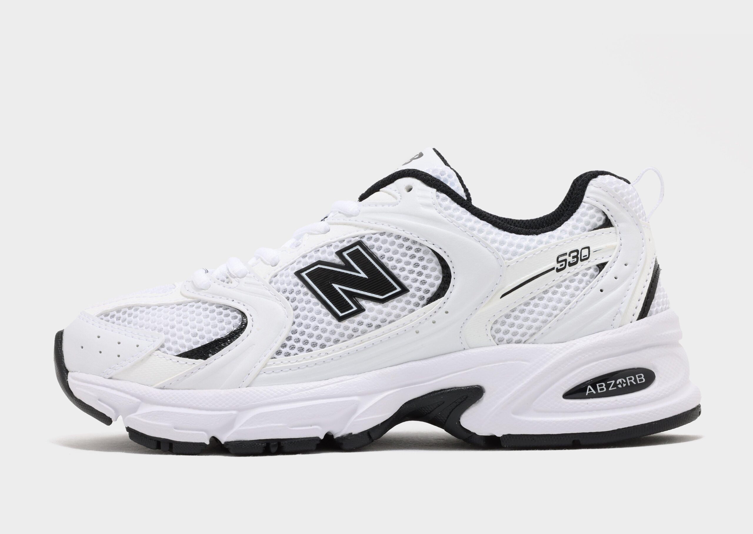 Refresh your rotation with some track-inspired style with these women’s 530 trainers from New Balance. Landing in a crisp white colourway with black accents. these retro runners are made with lightweight. breathable mesh in the upper. with smooth leather overlays stitched down for added support. They feature a tonal lace closure with plush padding around the low-cut collar for a secure fit. and sit on a chunky ABZORB midsole for supreme comfort. With a grippy rubber outsole for total traction. they’re finished up with signature New Balance branding throughout.