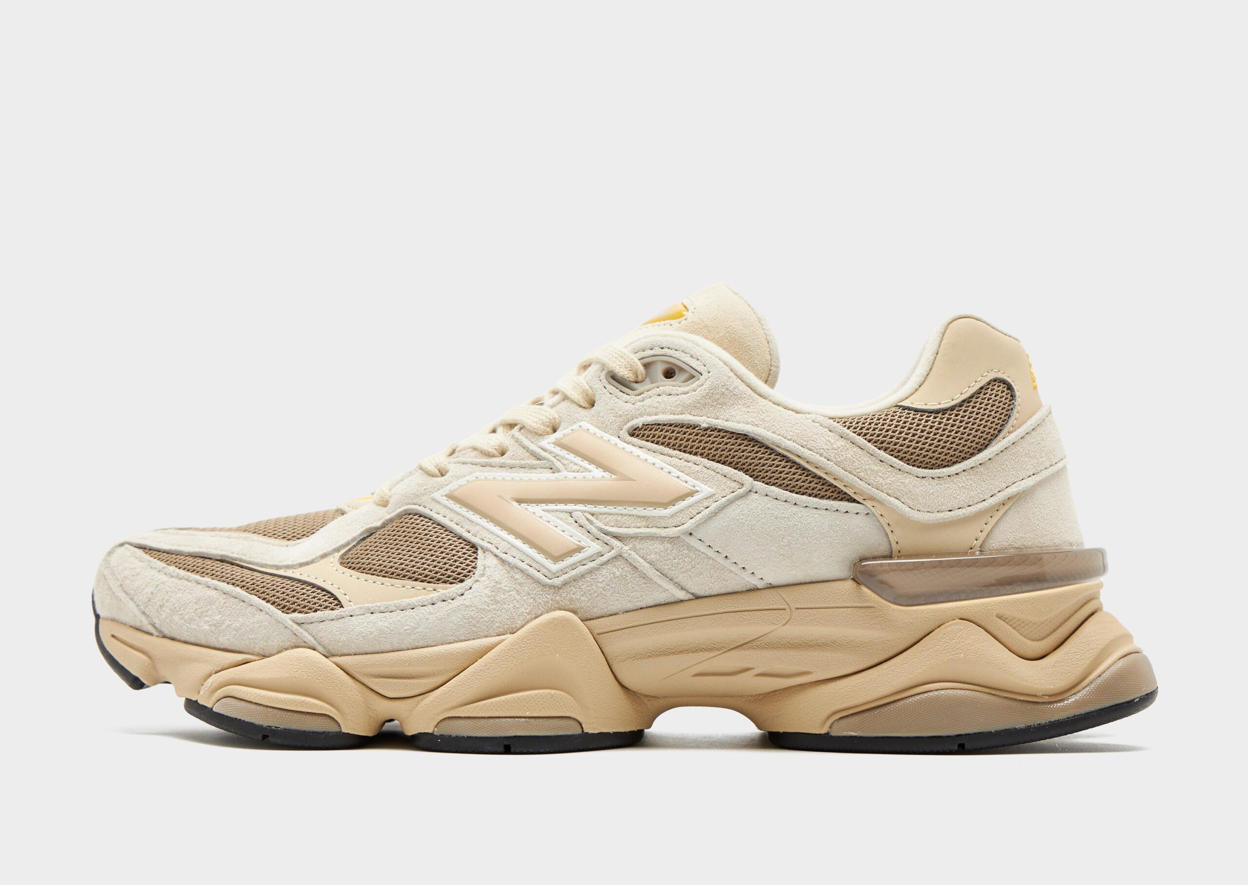 Bold reinterpretation of classic running design. merging Y2K-inspired aesthetics with modern performance technology. Featuring a layered upper crafted from mesh and suede in various grey tones. the sneaker is accented with striking black details and vibrant red highlights on the N logos. outsole. and tongue. Its sculpted midsole integrates ABZORB and SBS cushioning for all-day comfort and support. while the diamond-patterned outsole—drawn from the classic 860—offers dependable traction. The 9060 series reimagines elements from New Balance’s 99X line with futuristic lines and expanded sway bars for a distinctive. contemporary silhouette.