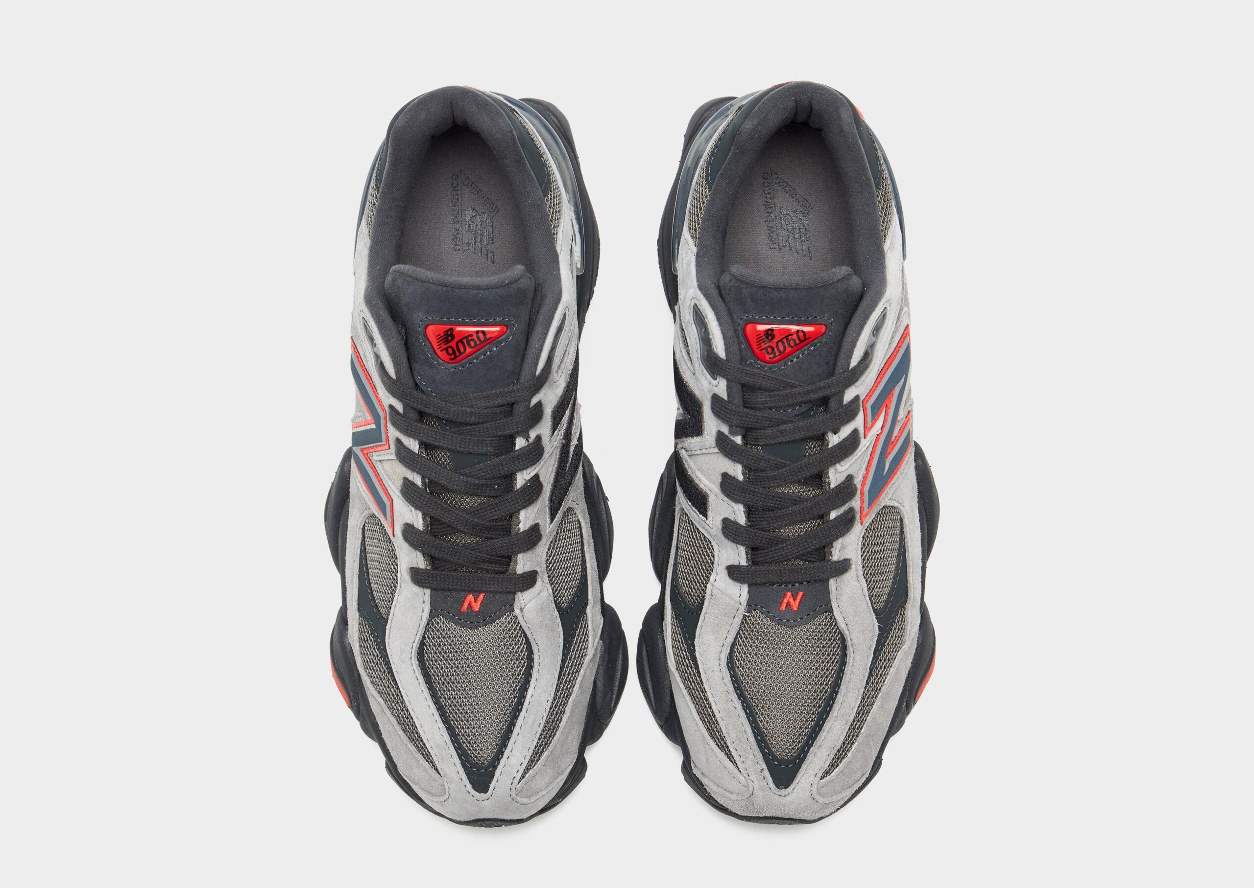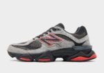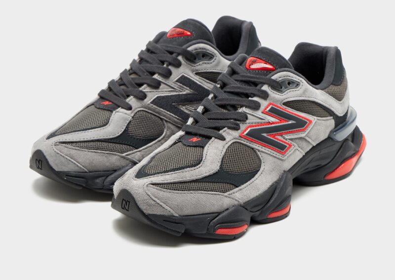 Bold reinterpretation of classic running design. merging Y2K-inspired aesthetics with modern performance technology. Featuring a layered upper crafted from mesh and suede in various grey tones. the sneaker is accented with striking black details and vibrant red highlights on the N logos. outsole. and tongue. Its sculpted midsole integrates ABZORB and SBS cushioning for all-day comfort and support. while the diamond-patterned outsole—drawn from the classic 860—offers dependable traction. The 9060 series reimagines elements from New Balance’s 99X line with futuristic lines and expanded sway bars for a distinctive. contemporary silhouette.
