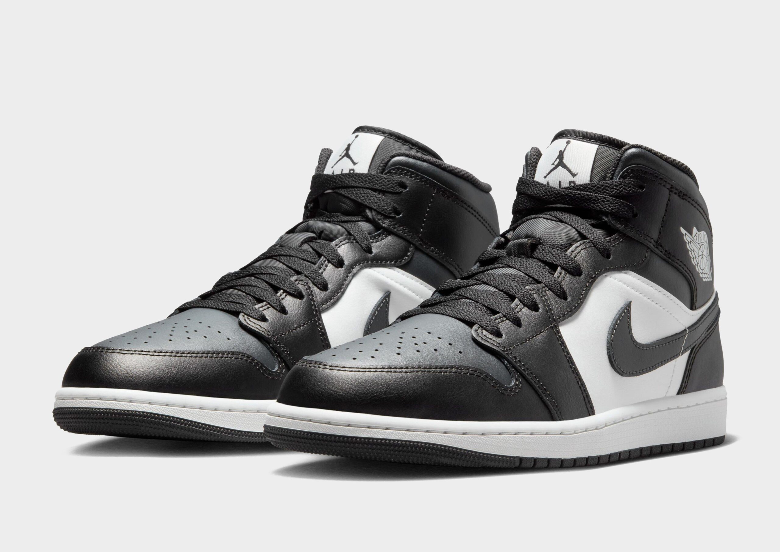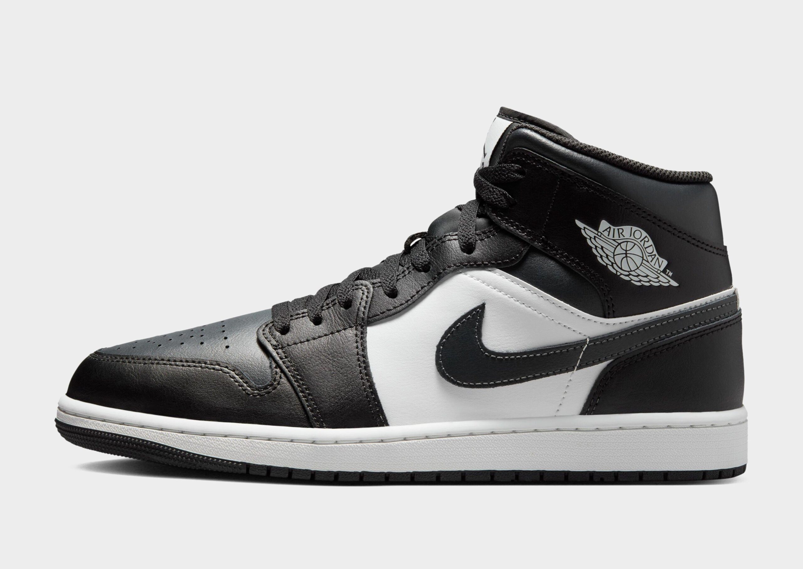 Add a legendary lace-up to your collection with these men’s Air 1 Mid trainers by Jordan. In a Black. Off Noir and Summit White colour block design. these basketball-inspired kicks have a crisp real and synthetic leather upper for lasting wear. With breathable perforations at the toe box and a classic lace fastening. they have plush padding around the mid-top collar. With Nike Air cushioning in the soft foam midsole for supreme comfort. they have a tough rubber tread and are signed off iconic Jordan branding.