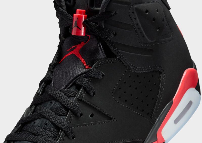 The elusive Reverse Infrared steps out of the archives to celebrate the AJ6’s 35th anniversary. bringing a legendary ’99 Infrared Salesman Sample concept to life. This distinctive colorway flips a Jordan classic with reversed accents on the midsole. while bright Light Crimson branding on the heel delivers a bold finish. A sample tag and Not For Resale stamp on the inner collar complete the story. Built for comfort and performance. Nike Air technology absorbs impact for cushioning with every step. while a durable rubber outsole provides reliable grip and long-lasting wear.