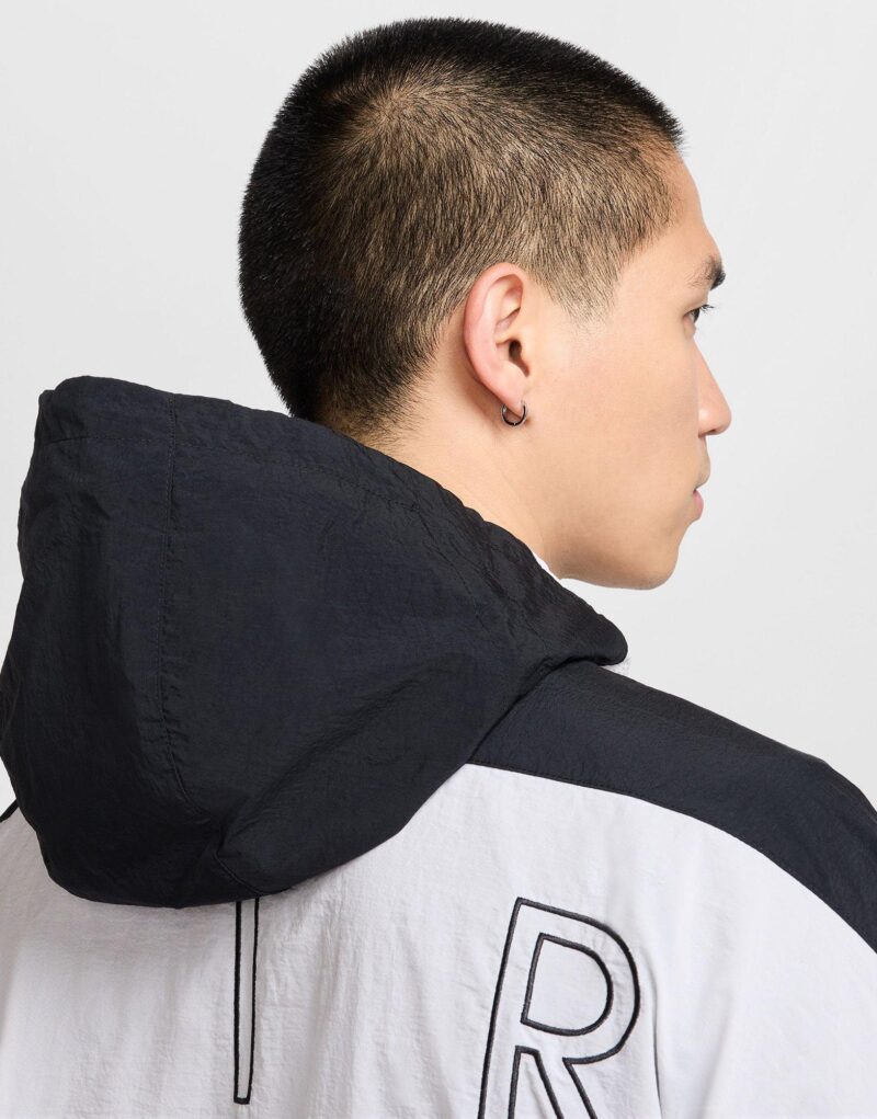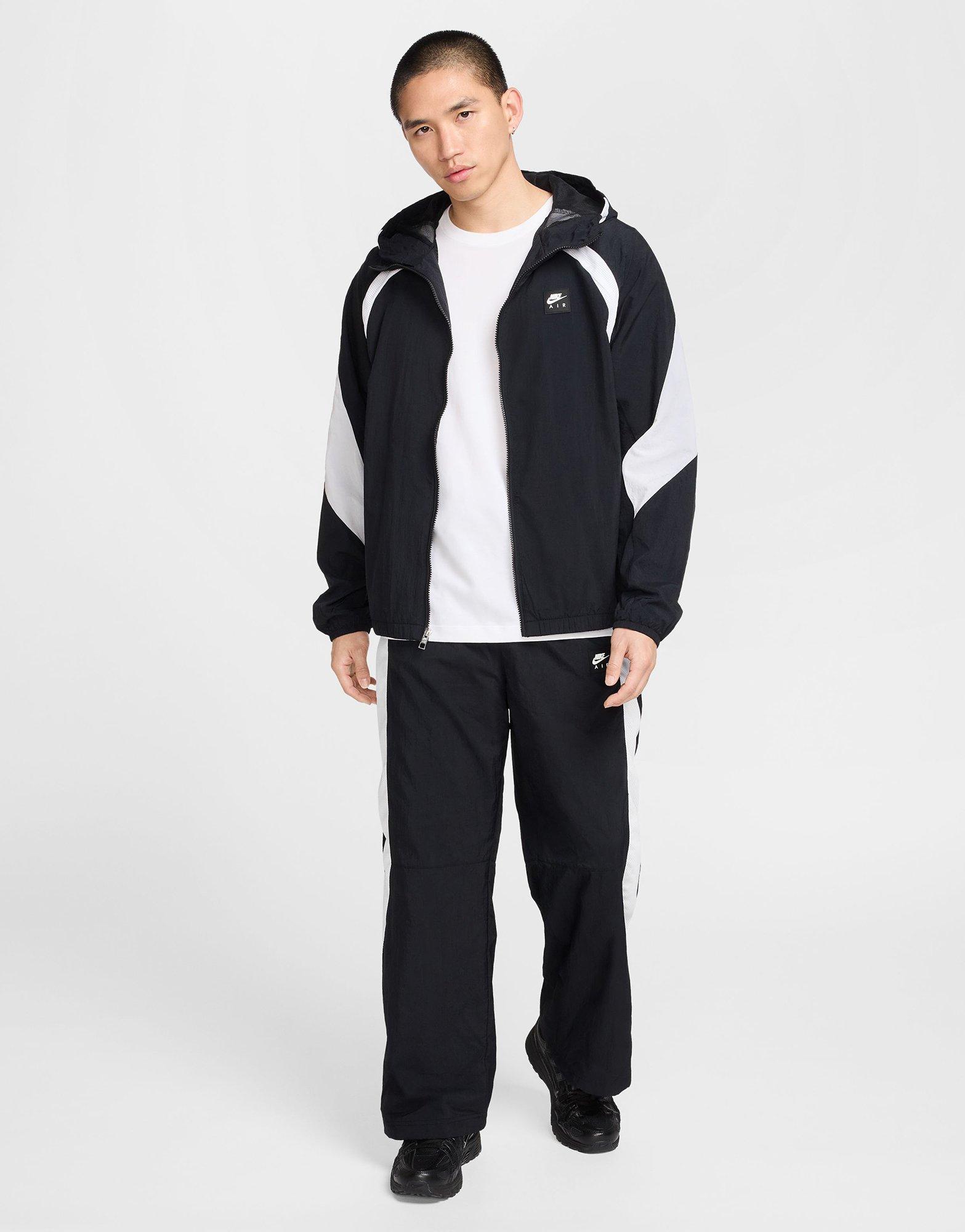 Elevate your casual wardrobe with this premium Men’s Woven Jacket. designed for comfort and style. Crafted from thick. water-repellent woven fabric. it offers a roomy fit for easy movement and layering. Mesh overlay panels add a sporty touch. while the hood features a mesh lining and adjustable bungee system to customize your fit. Finished with a large Air logo on the back and a silicone Nike Air patch graphic. this jacket blends bold design with practical performance. Made from 100% nylon body. 100% polyester mesh. and 100% polyester lining. it’s machine washable and imported for convenience.