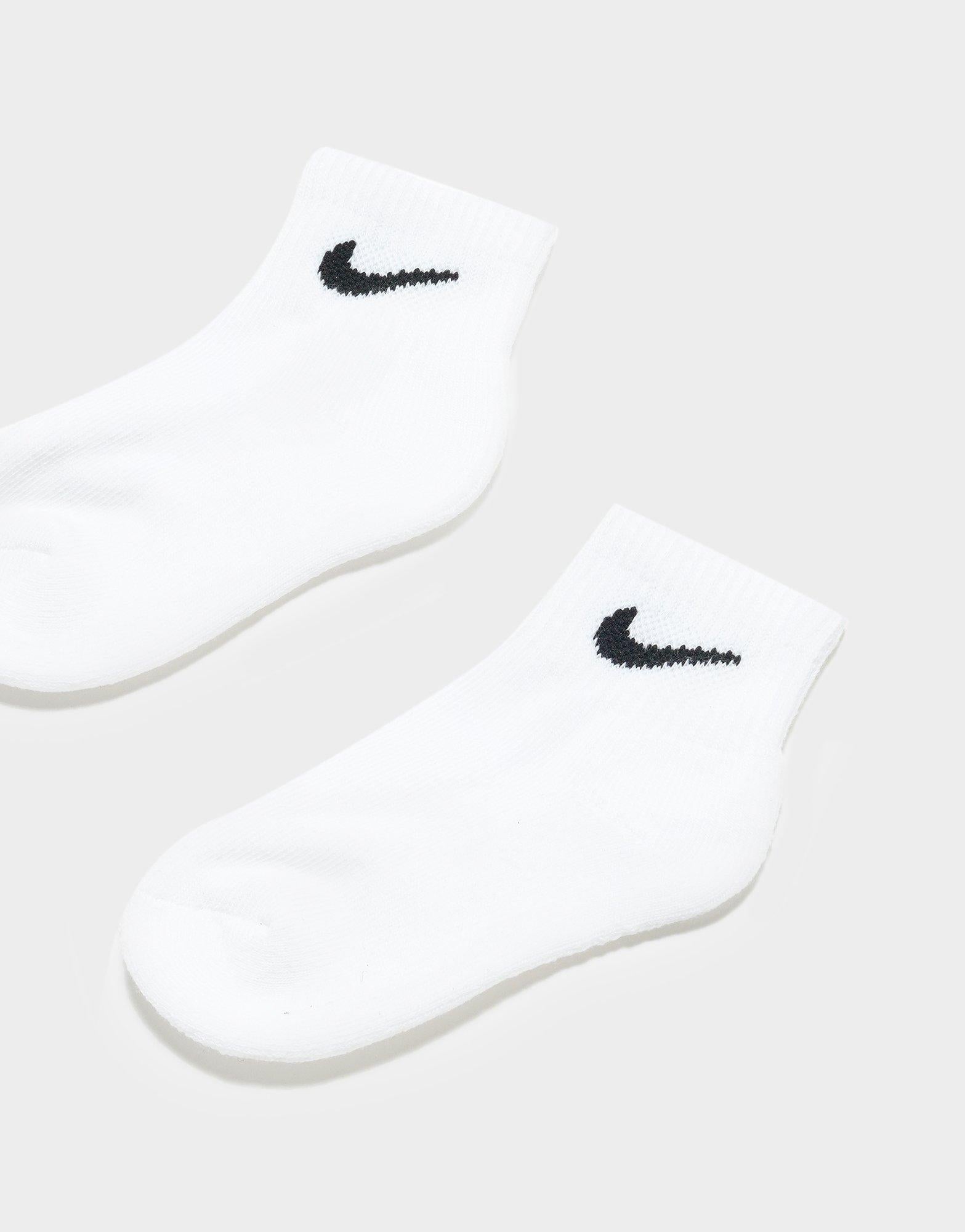 Keep your feet warm and comfy at all times with this 3 Pack of Quarter Socks from Nike. In a white colourway. these socks are made from a soft cotton blend that brings cushioning and a cosy fit. With ribbed detailing to the ankle. these cut for a no-show look socks are finished with black Swoosh branding to the sides.