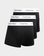This pack of three Calvin Klein trunks is crafted from comfortable cotton stretch fabric. featuring an elastic waistband with the iconic Calvin Klein logo and a contoured pouch for support. Designed with tonal stitching for a sleek finish. these trunks offer both comfort and style in every pair.