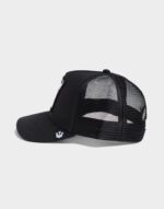 This Goorin Bros trucker cap features a bold embroidered patch on the front. adding a distinctive touch to its classic design. With a curved visor and breathable mesh back. it offers both style and comfort. ideal for casual wear. The snapback enclosure ensures an adjustable fit. while the blend of 57% polyester and 43% cotton provides durability with a lightweight feel. As a signature piece from Goorin Bro