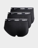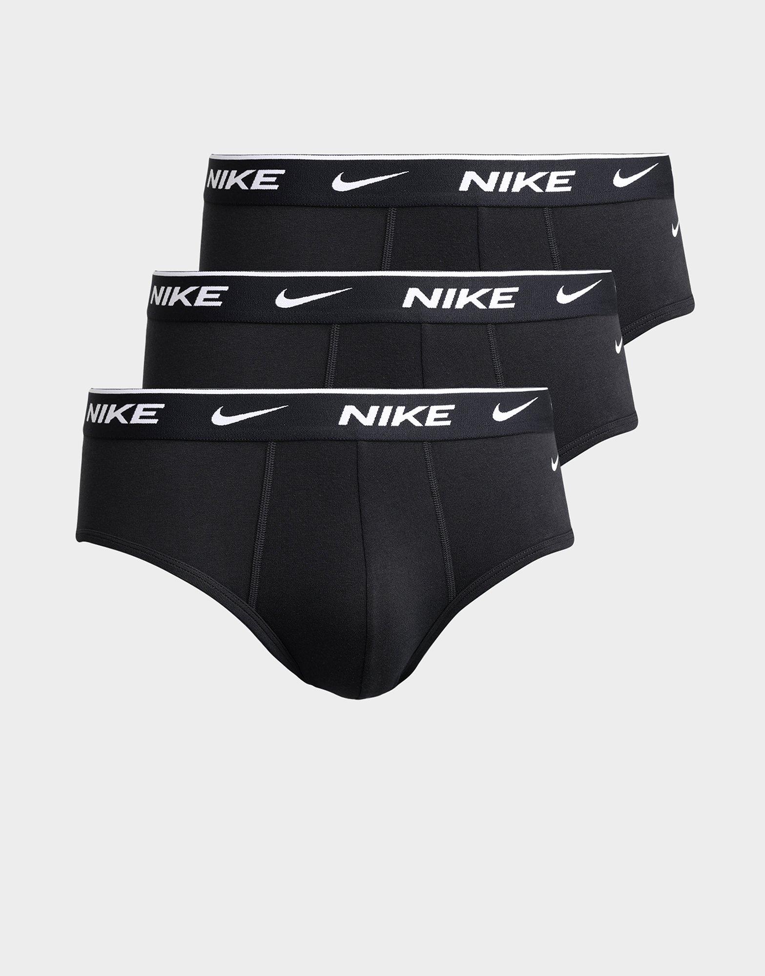 These men’s briefs come in a pack of three. crafted from a soft and flexible blend of 95 % cotton and 5 % elastane. They feature a slim. form‑fitting cut. a stretchy elastic waistband branded with Nike. and moisture‑wicking Dri‑FIT technology for dryness and breathability throughout the day