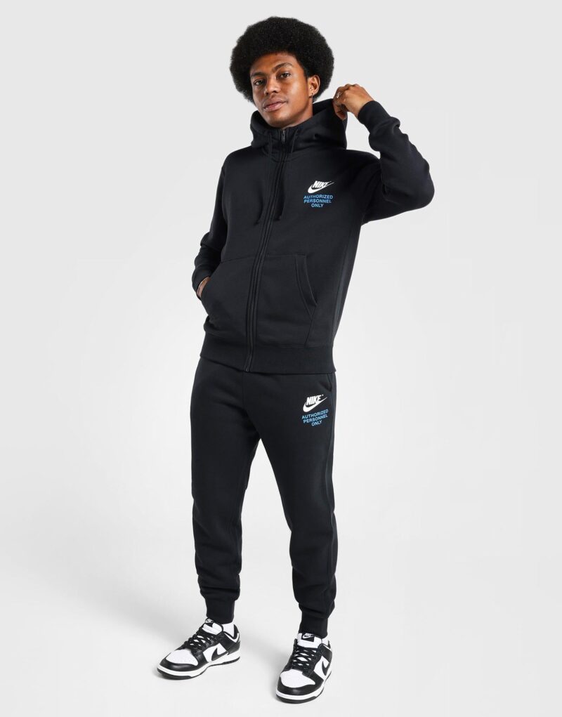 Made from soft brushed fleece. designed for warmth and everyday comfort. It features a classic silhouette with a drawstring hood. ribbed cuffs and hem. and split front pockets for convenience. The clean black design is accented with subtle Nike branding. making it versatile enough for casual wear. workouts. or layering. Its comfortable cotton-poly blend fabric offers durability and a cozy feel. ideal for year-round use.