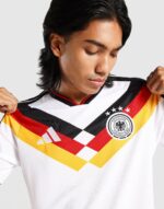 When it comes to football. heritage and innovation go hand in hand. Our Germany 26 Home Replica Jersey combines classic jersey elements with the latest technology and details. creating the icon of tomorrow. Crafted with a doubleknit construction. this jersey offers a slim fit that hugs the body. The adidas logo and club crest are embroidered. adding a touch of authenticity and pride to your game. Cool. Dry. Ready. Climacool wicks and disperses sweat for a cool. dry and distraction free performance. The EQT collar adds a stylish touch. while the quick-drying material keeps you feeling dry and comfortable throughout the game. With this jersey. you’re ready to make your mark on the pitch.