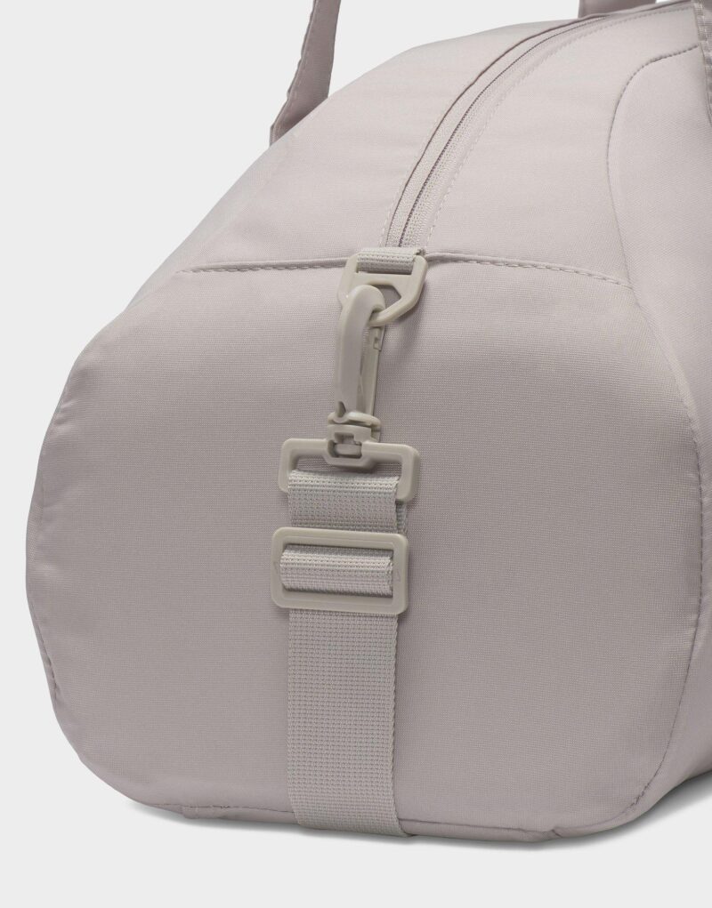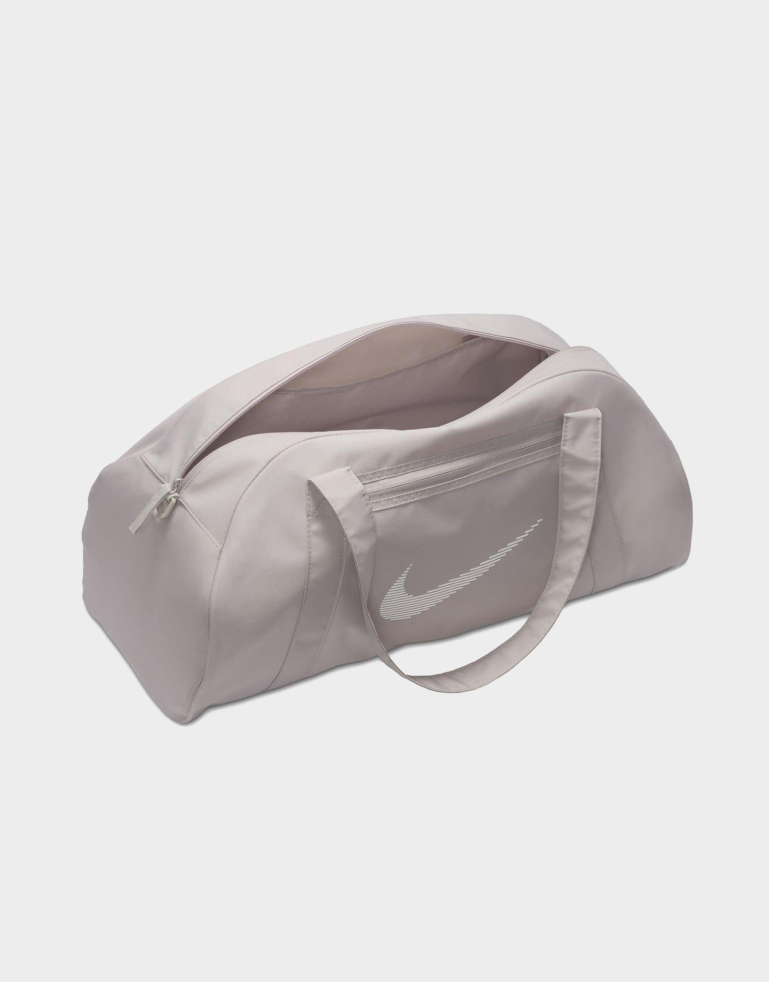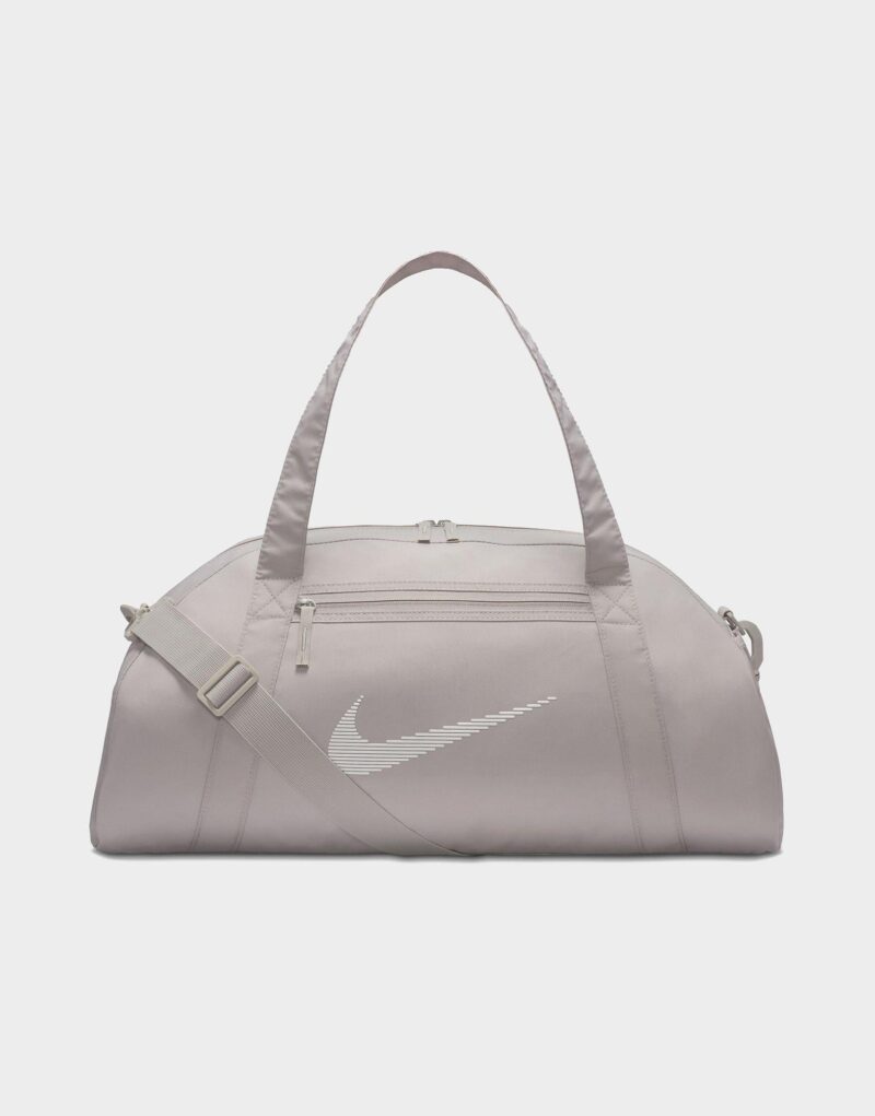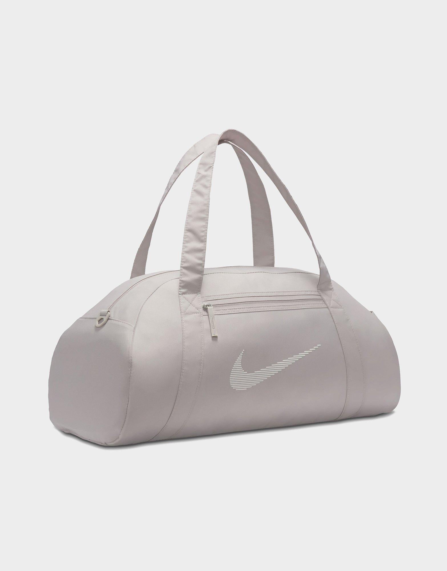 Whatever your fitness goal is. let this duffel bag be your companion. Simple and sleek. the Nike Gym Club Duffel has the space to hold all the essentials without the bulkiness of a regular duffel. The double zip main compartment has the space for shoes. clothes or other necessities. while the zippered front pocket keeps your small stuff organized. Whether carrying it with the removable and adjustable shoulder strap or its handles. this bag is an easy-to-grab essential.