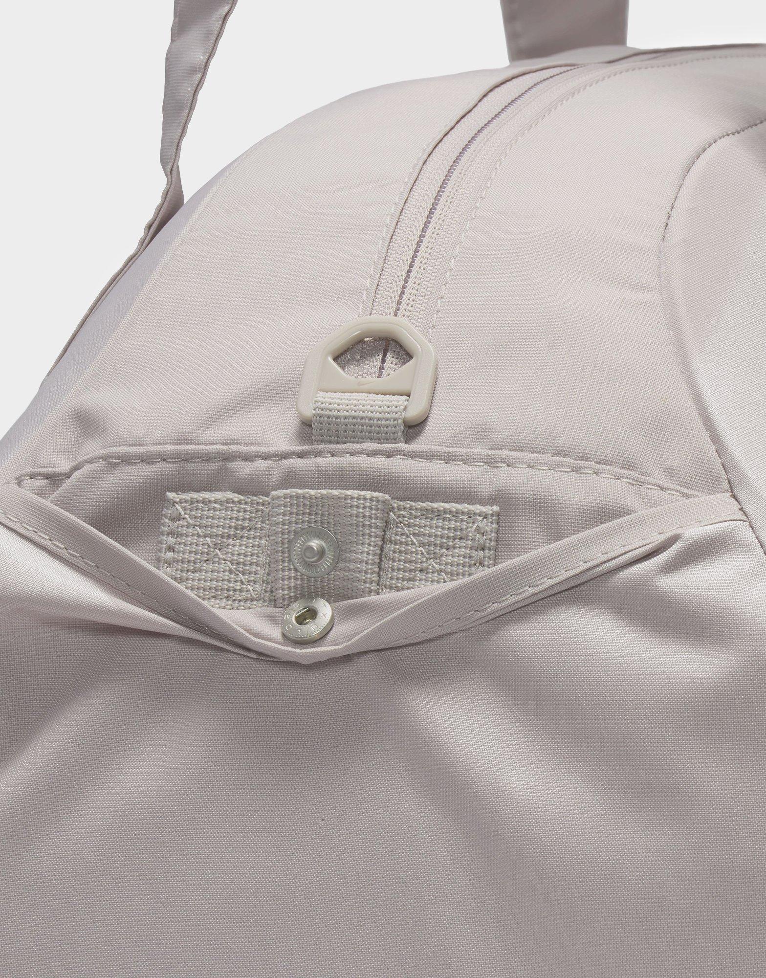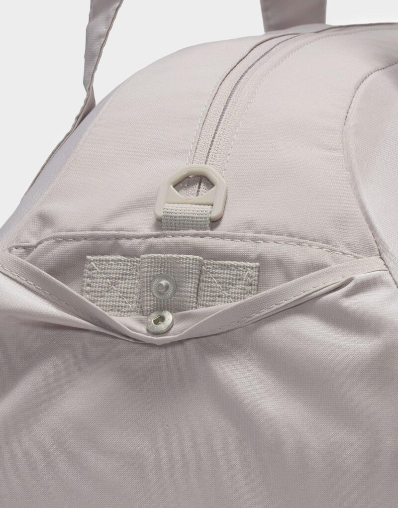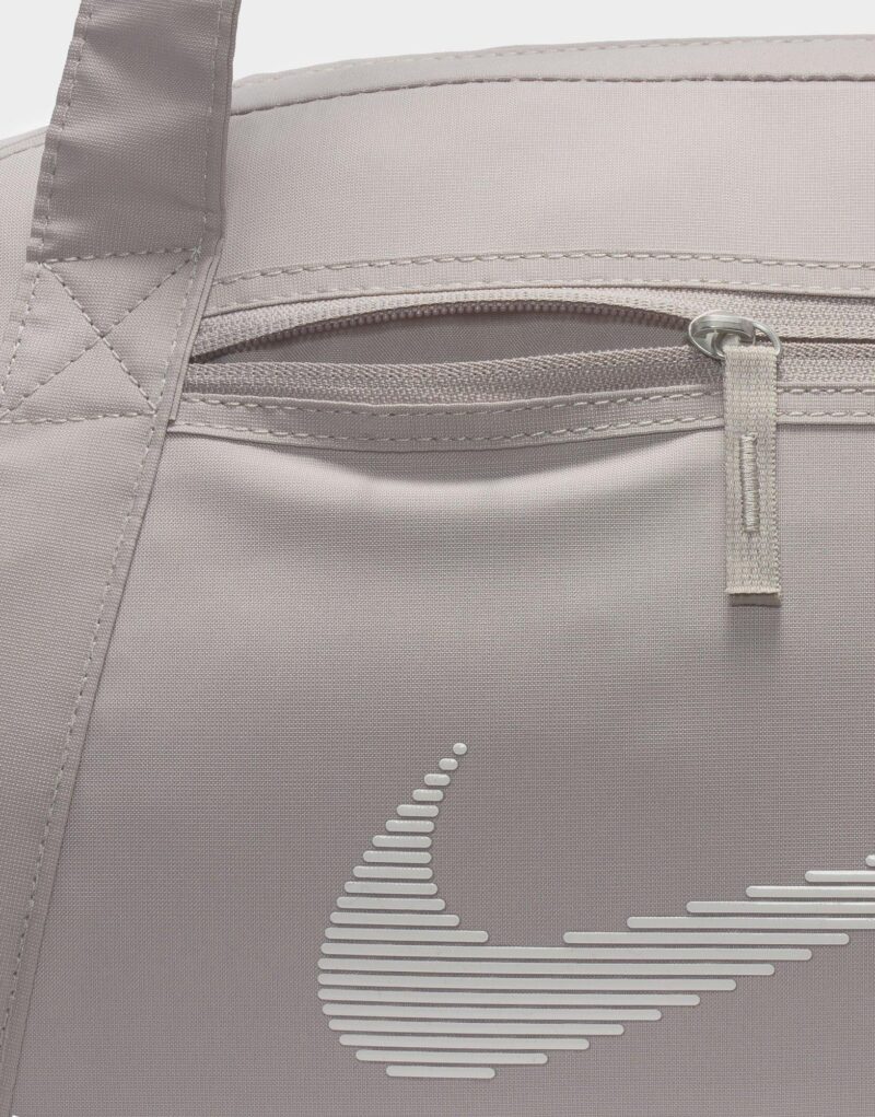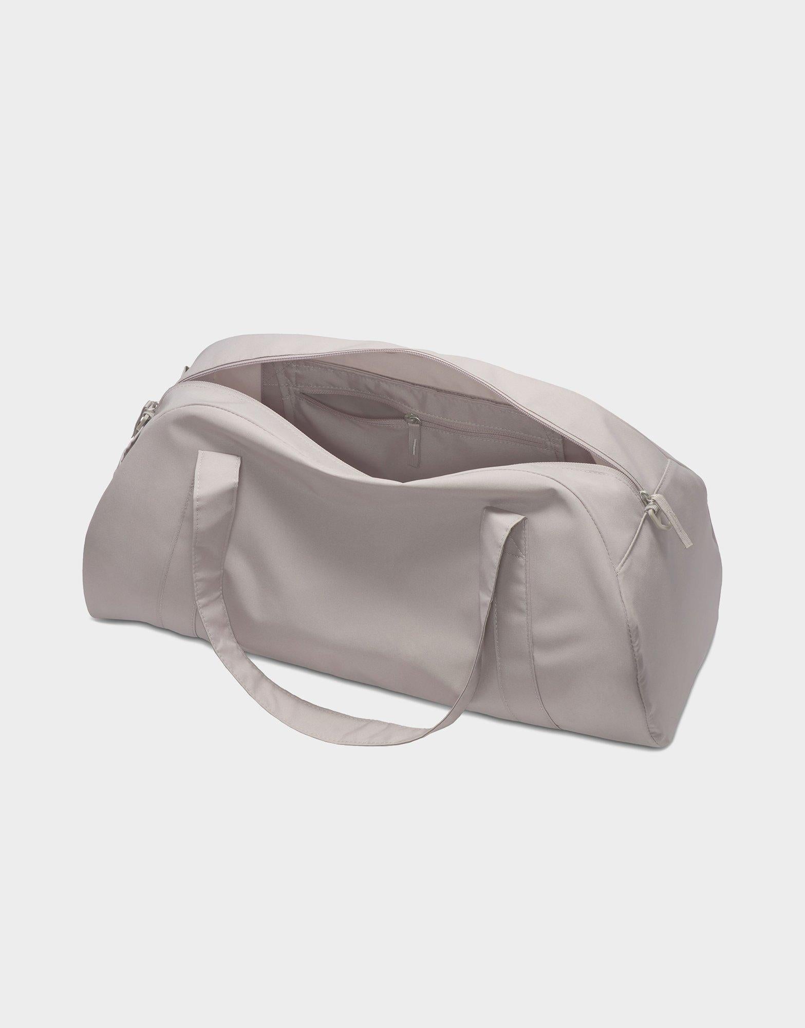 Whatever your fitness goal is. let this duffel bag be your companion. Simple and sleek. the Nike Gym Club Duffel has the space to hold all the essentials without the bulkiness of a regular duffel. The double zip main compartment has the space for shoes. clothes or other necessities. while the zippered front pocket keeps your small stuff organized. Whether carrying it with the removable and adjustable shoulder strap or its handles. this bag is an easy-to-grab essential.
