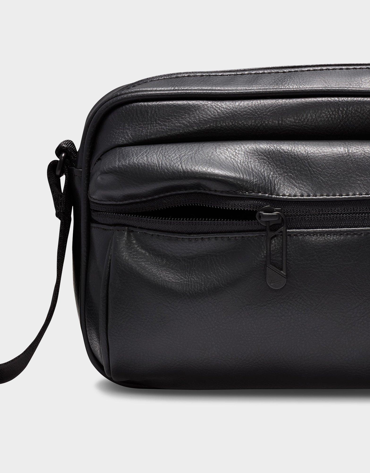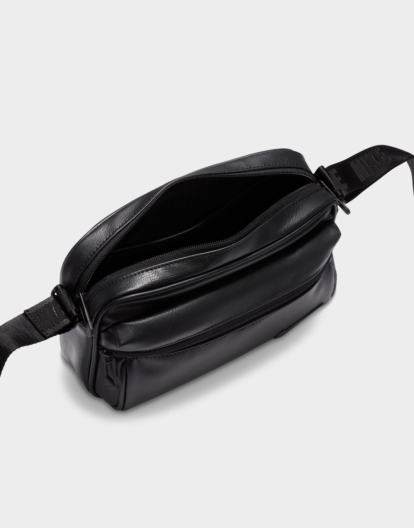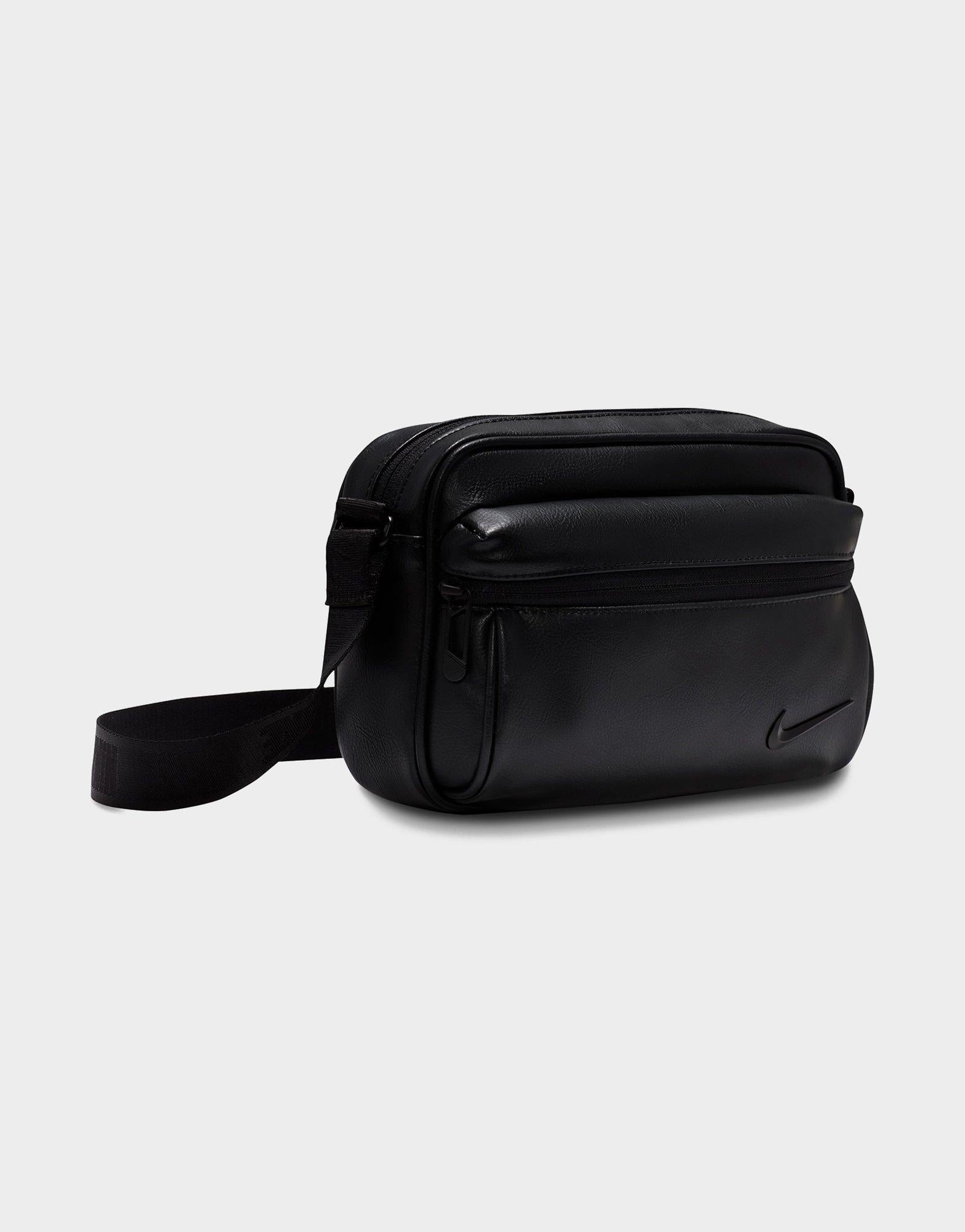 The Nike Heritage Premium Crossbody Bag (3L) is inspired by classic camera bags. offering a stylish and compact way to carry your daily essentials. Featuring a spacious main compartment and a front zippered pocket. it provides convenient storage for on-the-go organization. The adjustable strap allows for a personalized fit. while the sleek design adds a modern edge to any outfit. Crafted from durable polyurethane with a nylon-lined interior. the bag measures 9 W x 6 H x 3 D. making it the perfect blend of function and fashion. Spot clean only. Imported.