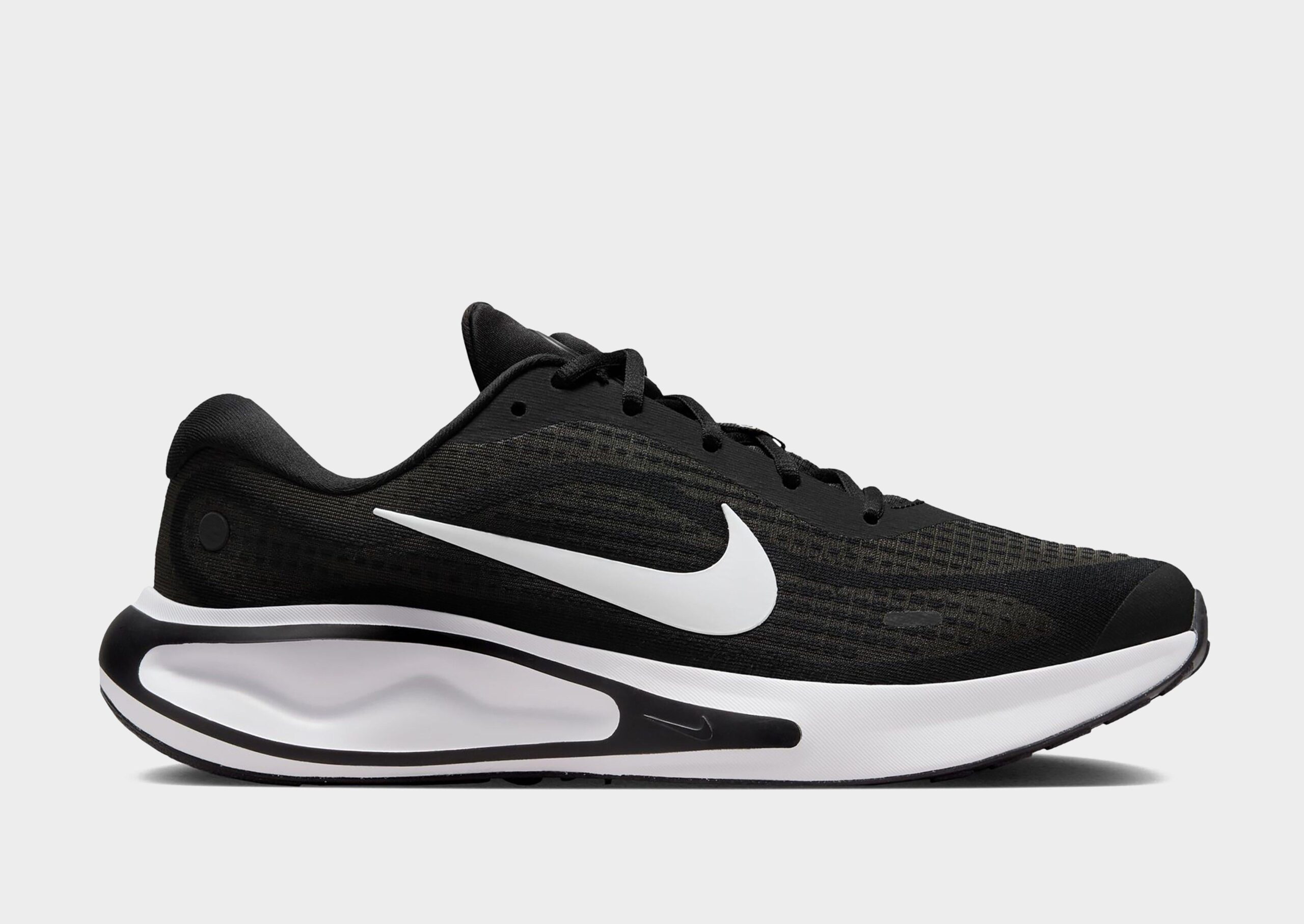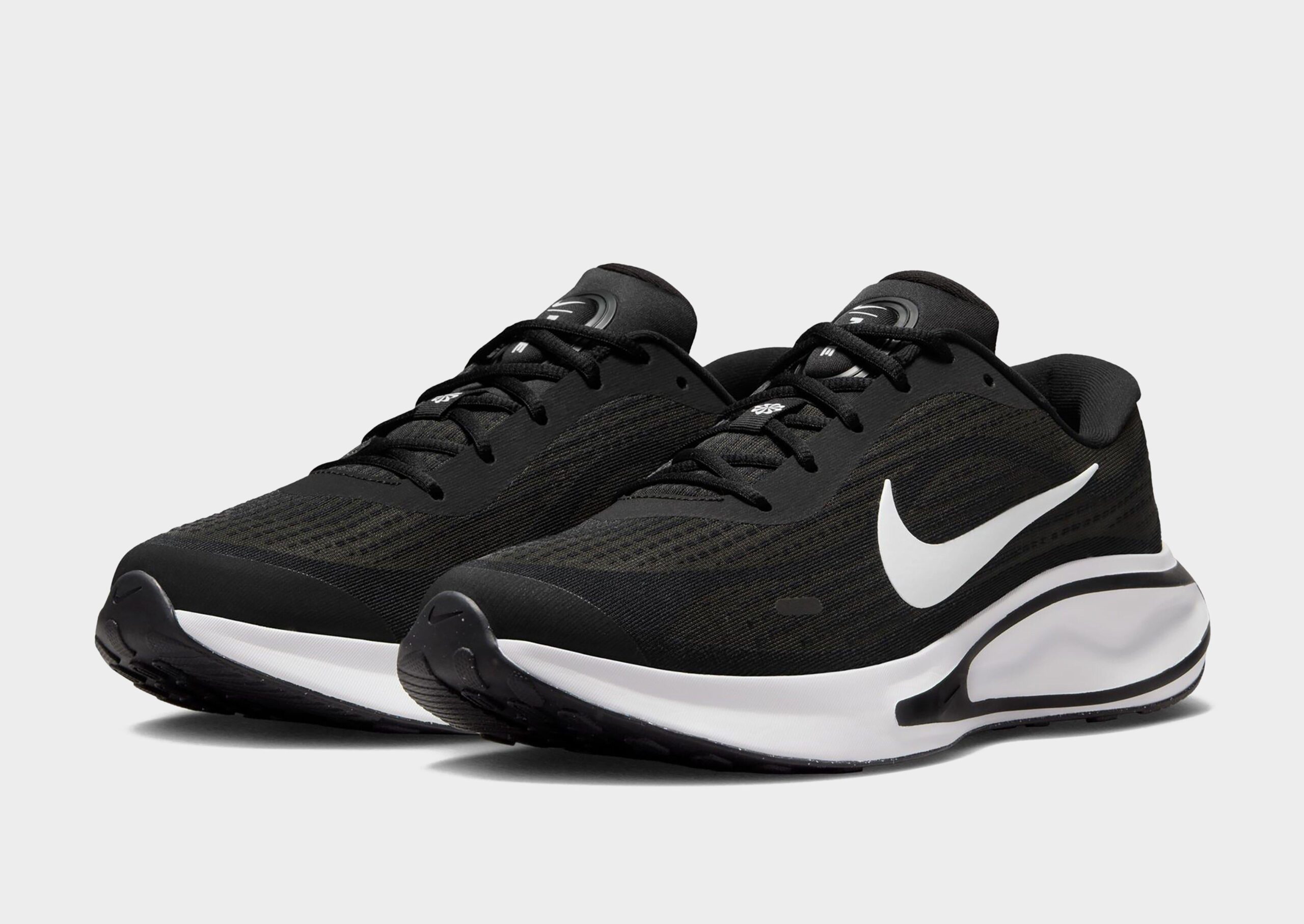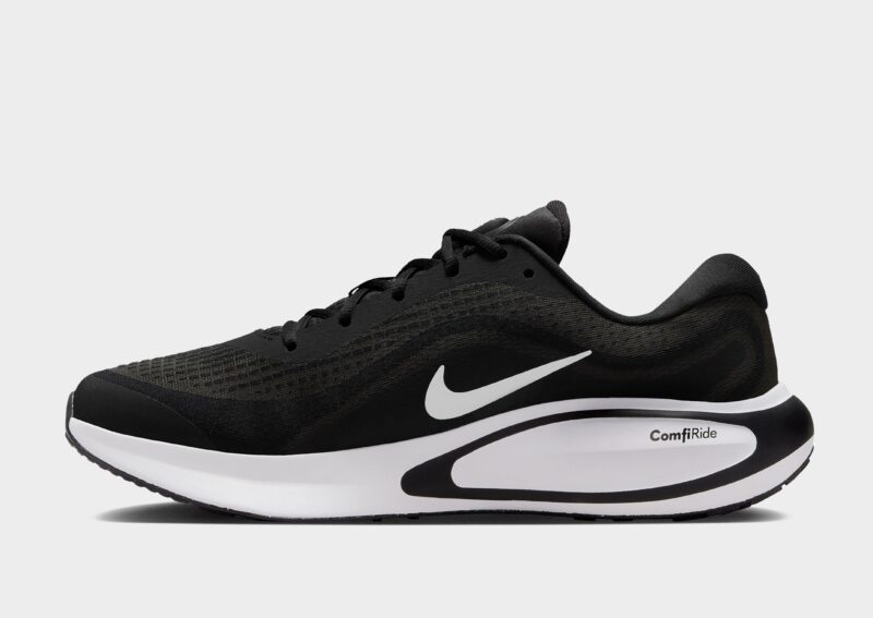 The Men’s Nike Journey Run Running Shoes are sleek low-top sneakers engineered for outdoor runs. combining lightweight durability with superior breathability thanks to their engineered mesh upper. Featuring a secure lace-up closure and soft touchpoints on the tongue and collar. they offer all-day comfort. The iconic Nike Swoosh appears on both sides. complemented by branding on the tongue. heel. and insole. while reflective details enhance visibility in low-light conditions. Extra-high foam stacks deliver supersoft ComfiRid