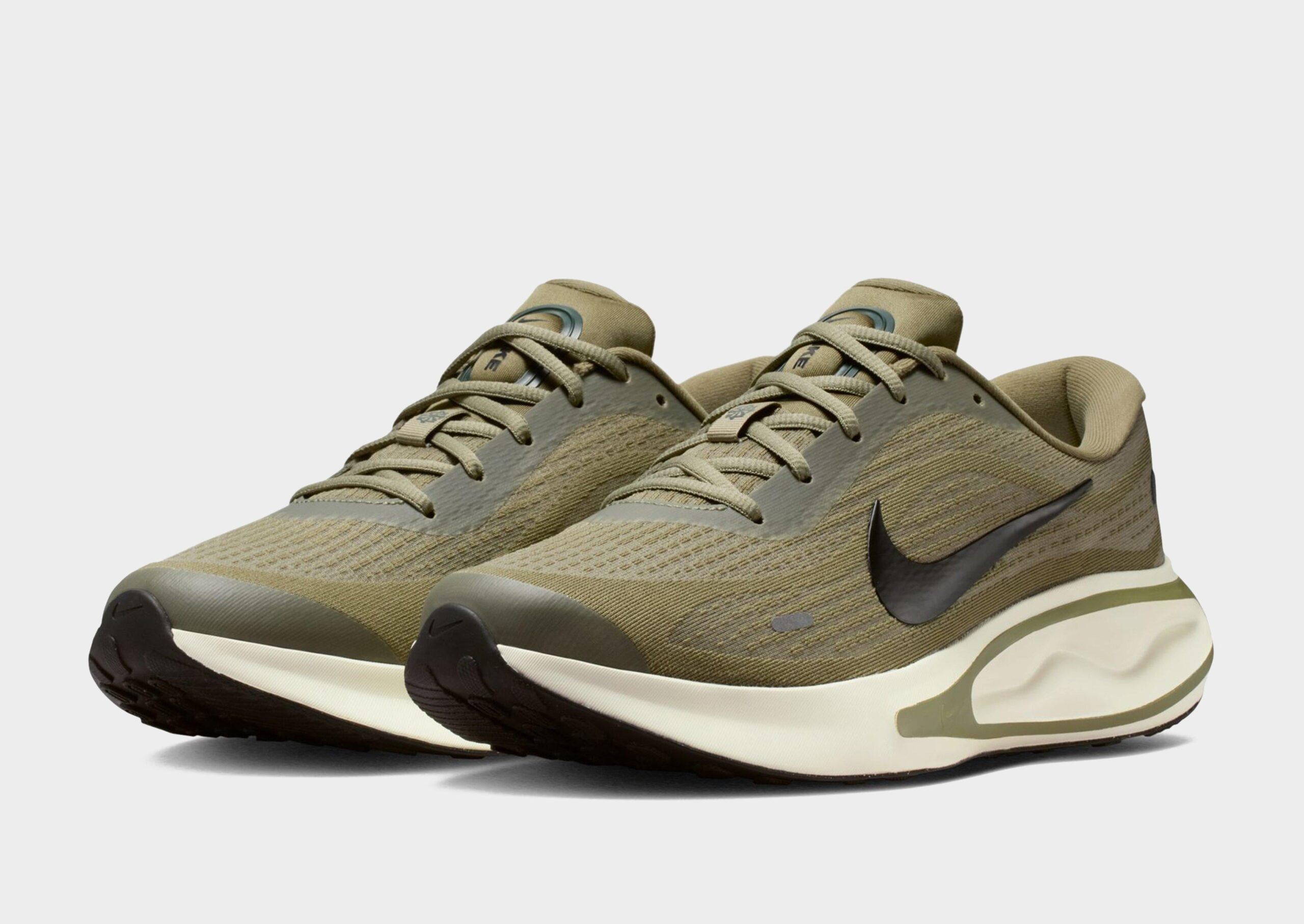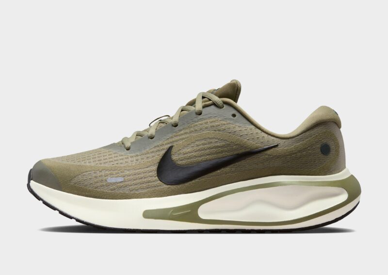 The Nike Journey Run Men’s Road Running Shoes make every run enjoyable with an extra-high foam stack and supersoft ComfiRide cushioning for plush. all-day comfort. The engineered mesh upper keeps your feet secure. while added cushioning in the heel and soft touch points on the tongue and collar enhance every step. A rubber outsole delivers grippy traction. and reflective details improve visibility. though these shoes are not intended for use as personal protective equipment (PPE).