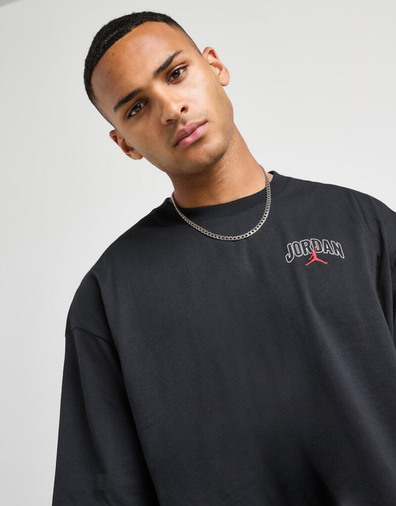 Level up your casual looks with this Jumpman T-Shirt from Jordan. in a Black colourway. It lands in a loose. roomy fit. with dropped shoulders and wide sleeves. Finished up with a Jumpman and Swoosh to the chest.