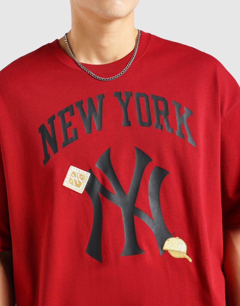 This tee from New Era brings together the heritage of the New York Yankees and festive flair of the Lunar New Year. rendered in a bold red colour symbolic of good luck and celebration. The oversized cut and crew neckline give it a relaxed streetwear‑ready silhouette. while the classic MLB/Yankees logo on the chest lets you show support for the team with a clean. sporty aesthetic. Crafted from soft cotton fabric. it’s comfortable and breathable — perfect for everyday wear. casual outfits. or game‑day looks when you want a balance of comfort. style and team pride. Our model is 5’11 and wears a size medium.