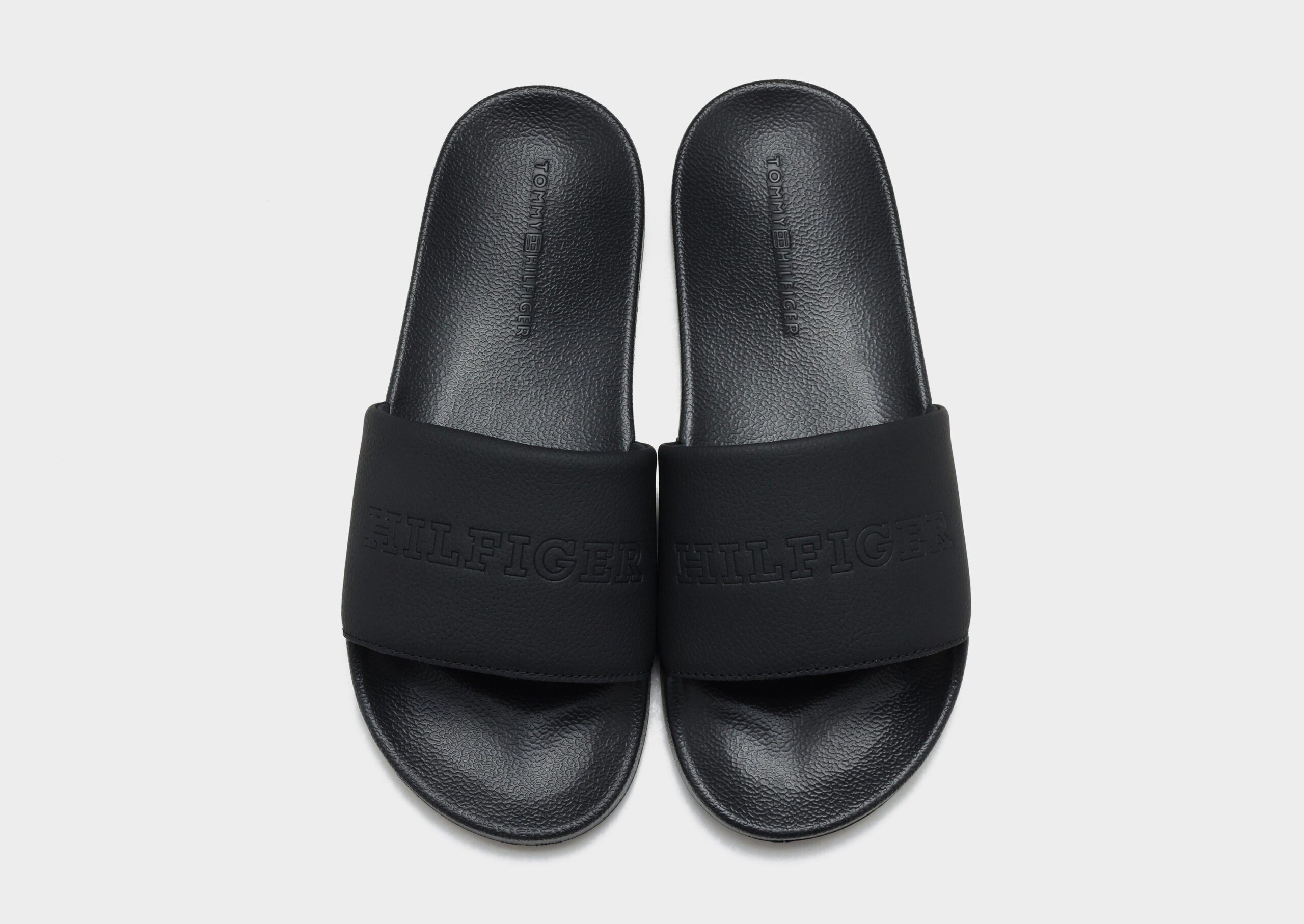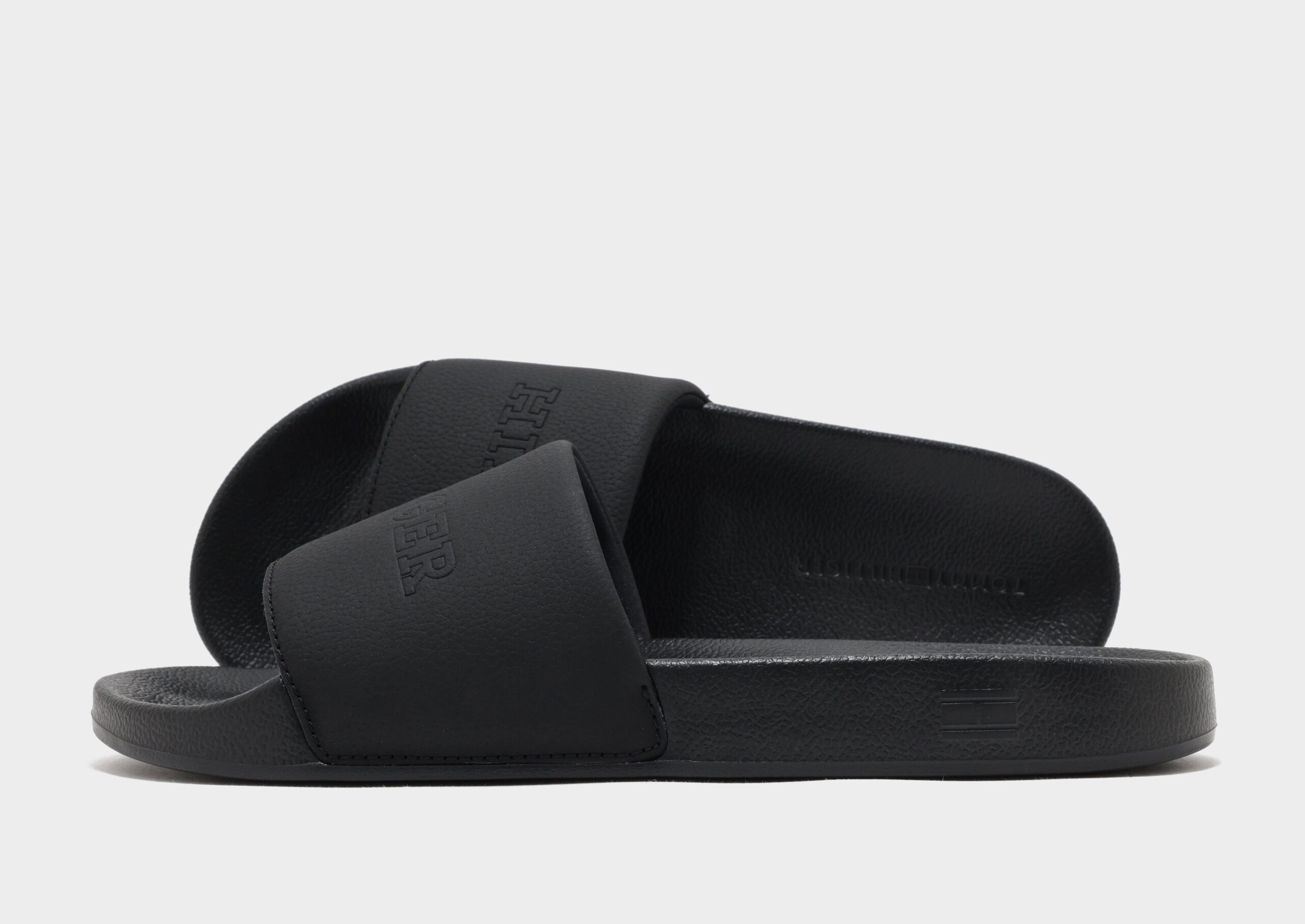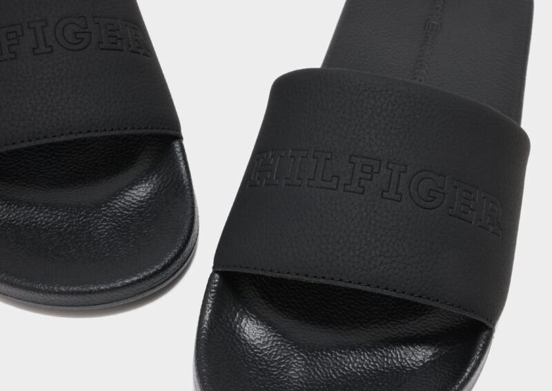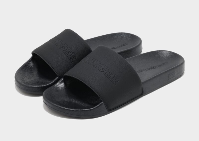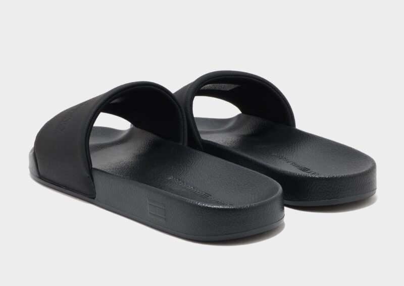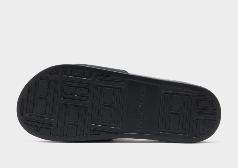 Relax in effortless style with the Tommy Hilfiger TMBL Hilfiger Pool Slides in Black. These classic slides feature a smooth. contoured footbed that provides comfort and support with every step. The wide strap is adorned with the iconic Tommy Hilfiger logo for a signature look. while the lightweight. durable sole offers excellent traction on wet and dry surfaces. Perfect for poolside lounging. casual outings. or everyday wear. these slides combine comfort. versatility. and unmistakable Tommy Hilfiger style.