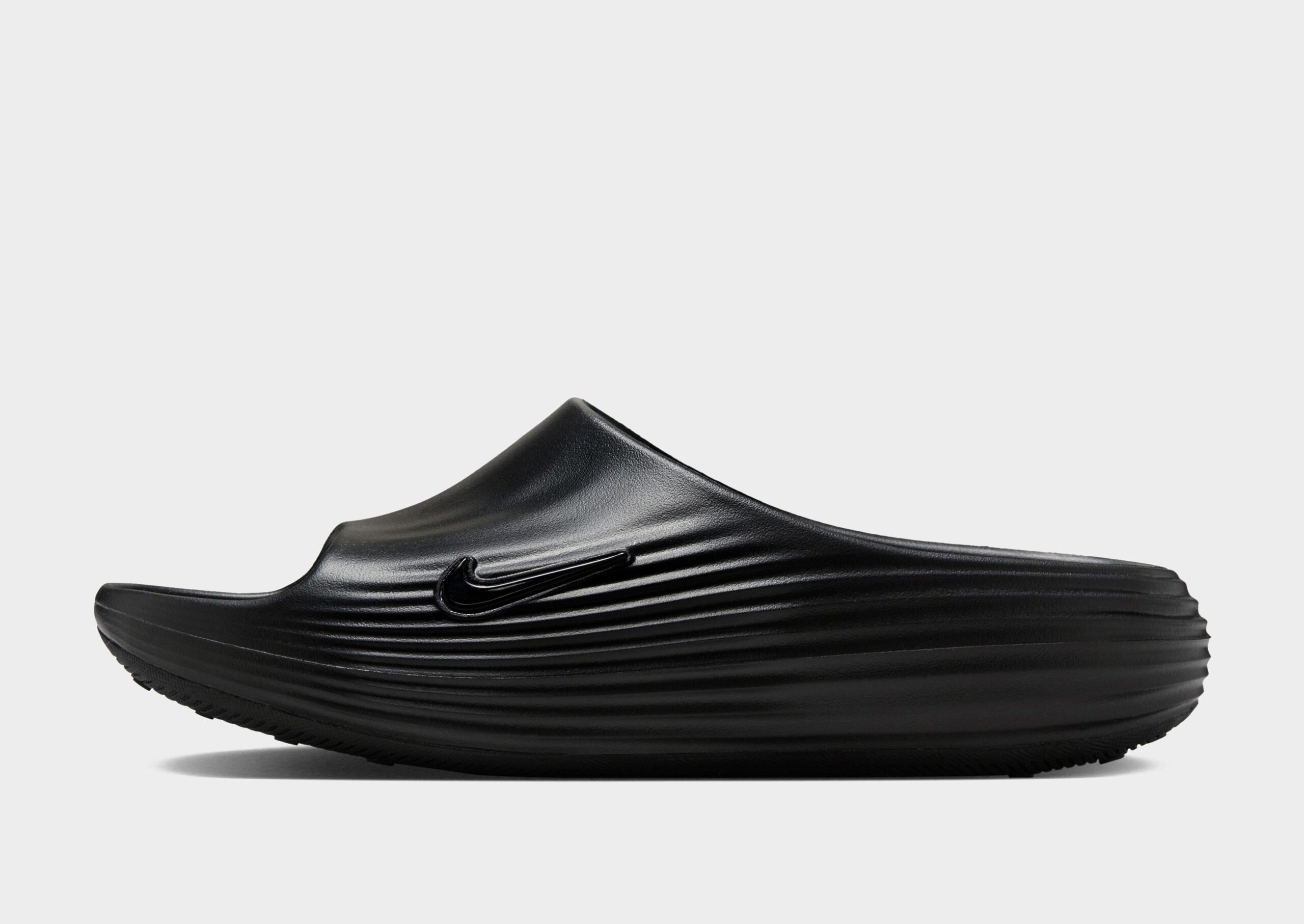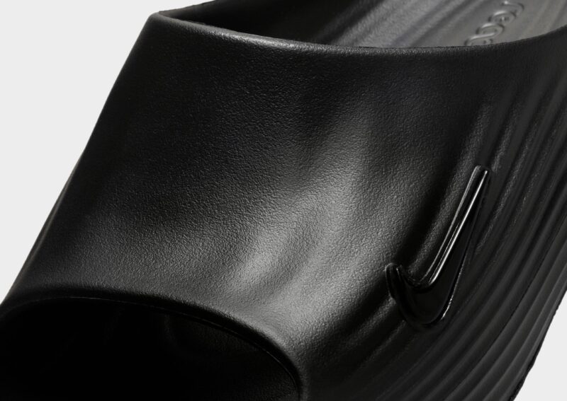 Crafted from soft and responsive ReactX foam. it offers cushioning and support ideal for post-workout relaxation or casual wear. The slide features an open-toe and open-heel design for breathability. with molded ridges on the footbed for added comfort. A metallic Nike Swoosh logo is displayed on the lateral side. completing the sleek look.