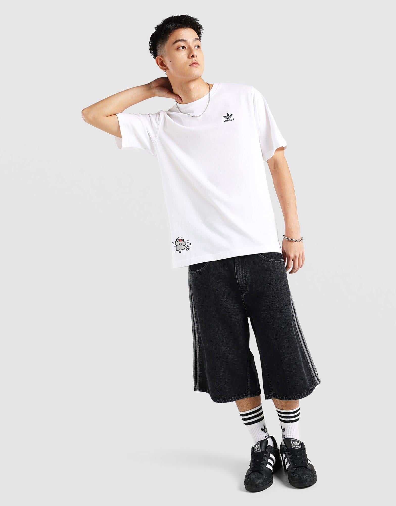 Brings a fresh. clean take on music-inspired street style. Made from soft. breathable cotton. this short-sleeve T-shirt features a bold scratching record graphic that stands out against the crisp white base. Designed with a classic crew neck and comfortable regular fit. it’s an easy everyday piece that pairs effortlessly with jeans. shorts. or joggers for a relaxed adidas lifestyle look. Our model is 5’9 and wears a size medium.