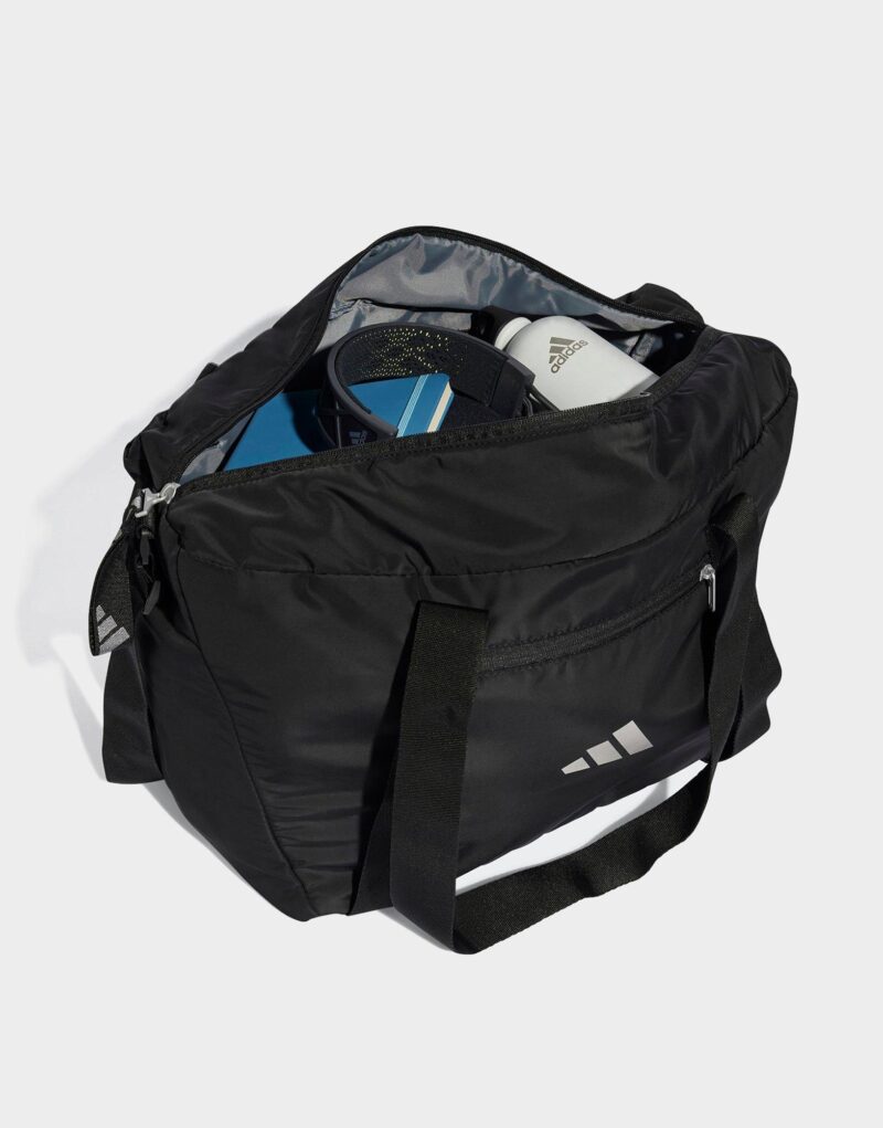 The gym is your happy place. and this adidas gym bag keeps you organised so you can make the most of every minute there. It has a pocket for your water bottle and a cording system for your yoga mat. A front zip pocket keeps small essentials within easy reach. This product is made with at least 50% recycled materials. By reusing materials that have already been created. we help to reduce waste and our reliance on finite resources and reduce the footprint of the products we make.