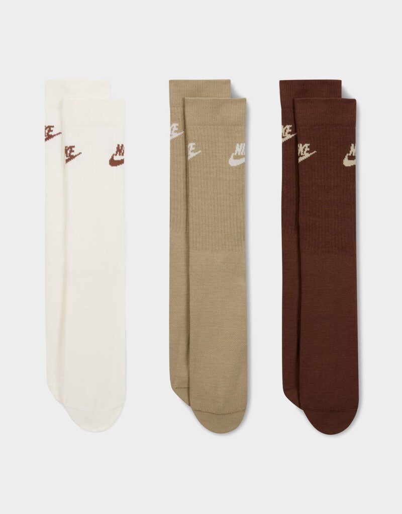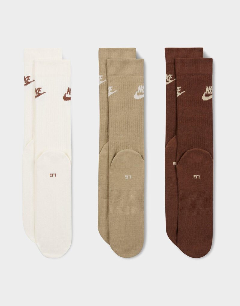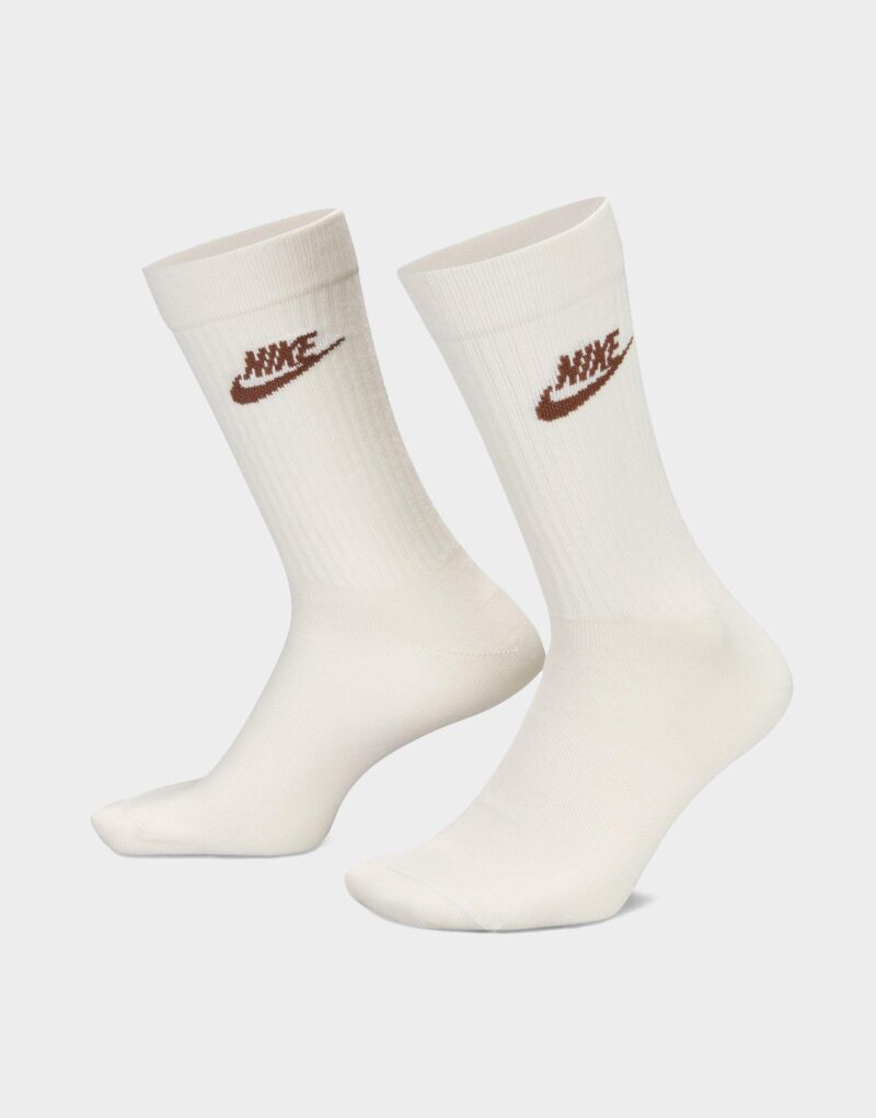 The Nike Sportswear Everyday Essential Crew Socks (3 Pairs) combine comfort and performance with a soft. stretchy fabric that adapts to your foot. Featuring Dri-FIT technology to keep feet dry. reinforced heel and toe for lasting durability. and strategically placed mesh for enhanced breathability. these crew-cut socks are designed for everyday wear with a premium feel.