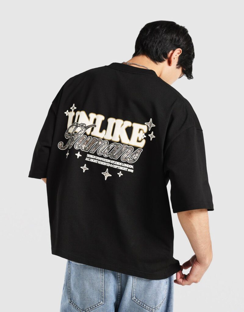 The UNLIKE HUMANS Steel T-Shirt in Black delivers a bold. contemporary look with a clean. minimalist edge. Crafted for everyday comfort. this tee features a soft. breathable fabric and a classic silhouette that’s easy to style on its own or layered. Finished in a versatile black colorway. it reflects the brand’s modern streetwear aesthetic while offering a relaxed fit that’s perfect for daily wear. making it a staple piece for any casual wardrobe.