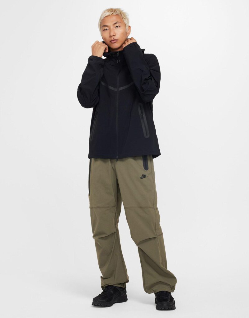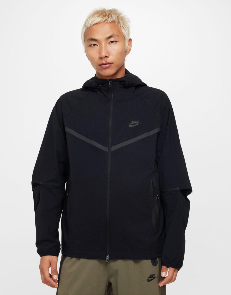 The Nike Tech Windrunner Men’s Woven Full-Zip Jacket offers a fresh update on the classic Windrunner with smooth. slightly stretchy woven fabric that’s roomy through the chest. arms. and body for easy layering and movement. It features stretchy drawcords with cord locks at the hood and hem for a customizable fit. taped pockets. and articulated sleeves inspired by the original Tech Fleece Windrunner design. Lightweight and moisture-wicking. this jacket helps keep you dry and comfortable. while the Nike Futura logo adds a signature touch. Made of 94% nylon and 6% spandex with polyester pockets. it’s machine washable and imported.