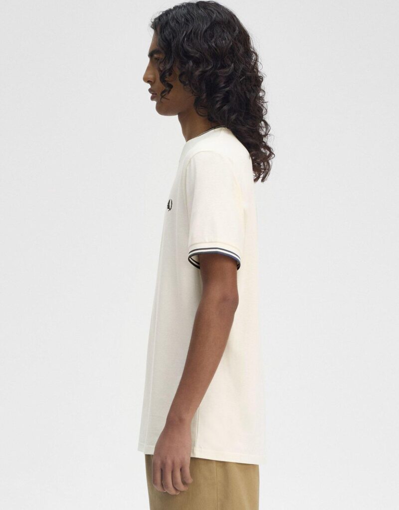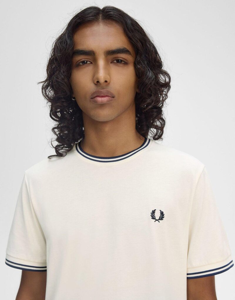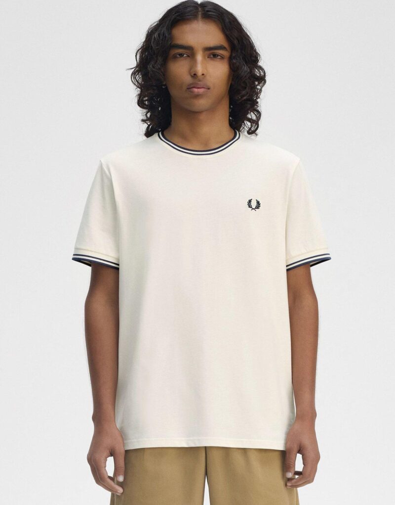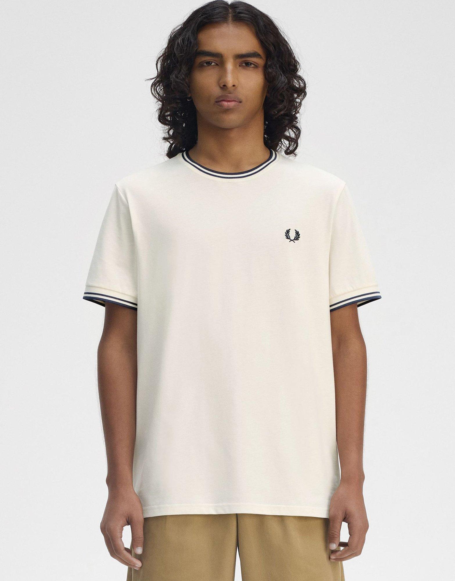 Exclusive to JD. Freshen up your off-duty rotation with this men’s Twin Tipped T-Shirt from Fred Perry. In an Ecru colourway. this regular-fit tee is cut from soft cotton fabric for total comfort. It features a ribbed crew neckline and shot sleeves for a classic cut. with twin tipped trims for a premium look. Finished up with an embroidered Laurel Wreath logo on the chest. Machine washable. | Our model is 6’0 with a 35 chest and wears a size M.
