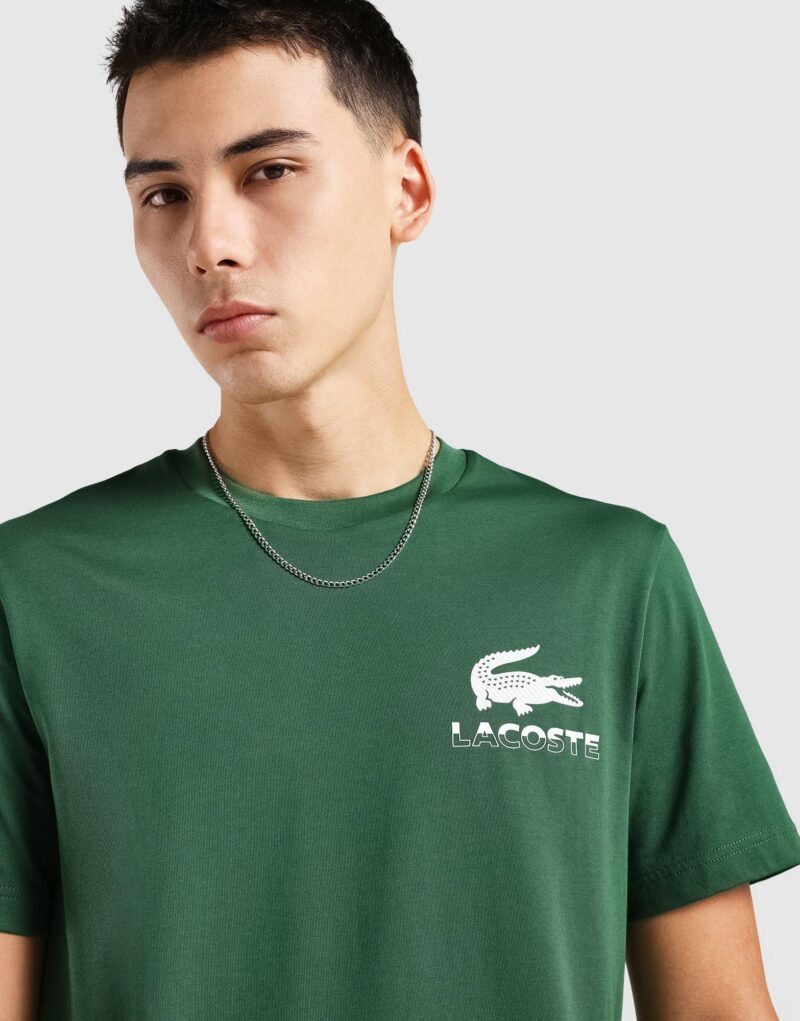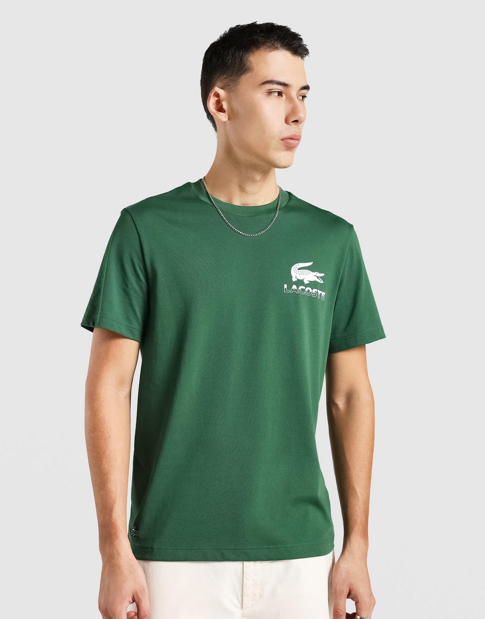 The LACOSTE Urban Graphic Tee in Green combines casual comfort with a modern street-inspired design. Featuring a bold graphic print that adds a contemporary edge. this tee is crafted from soft. breathable cotton for all-day wear. A versatile piece. it pairs easily with jeans. joggers. or shorts for a laid-back yet stylish look.