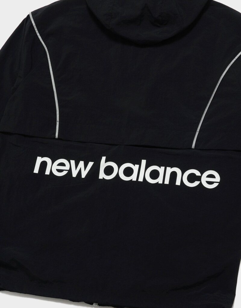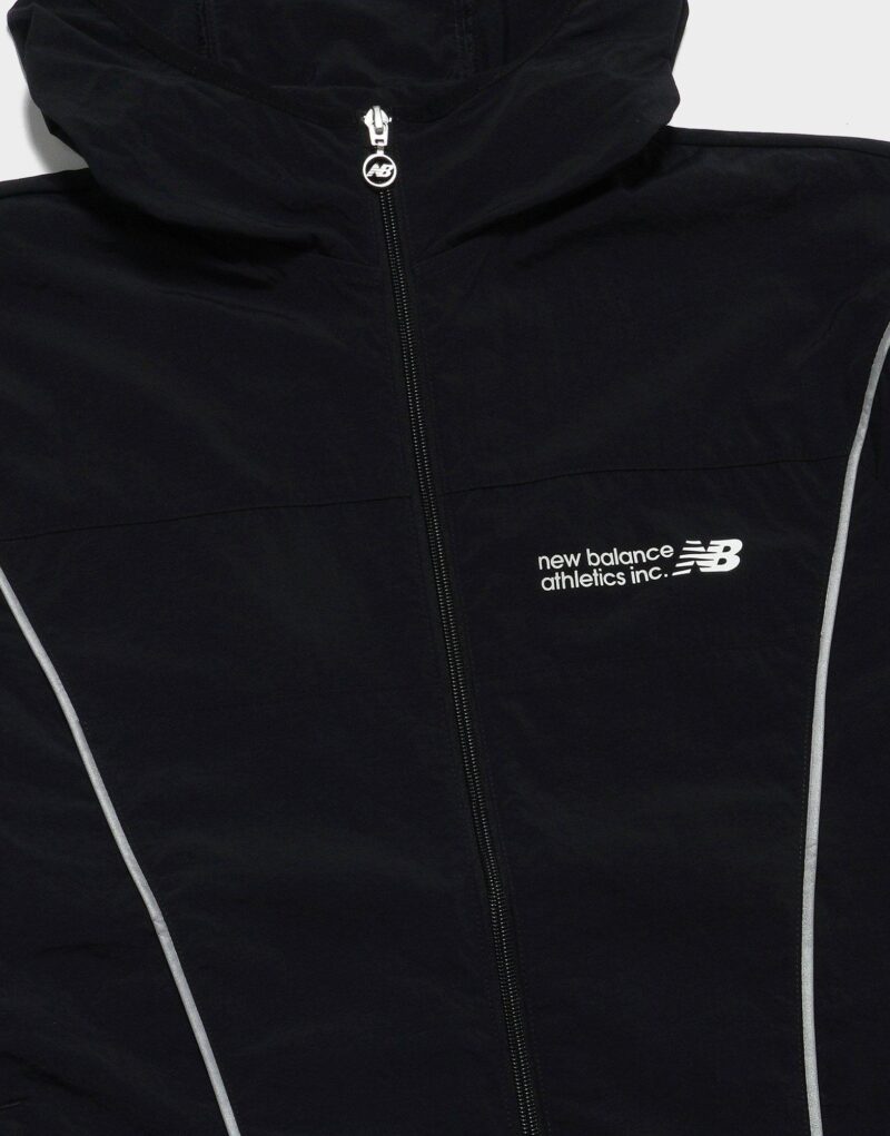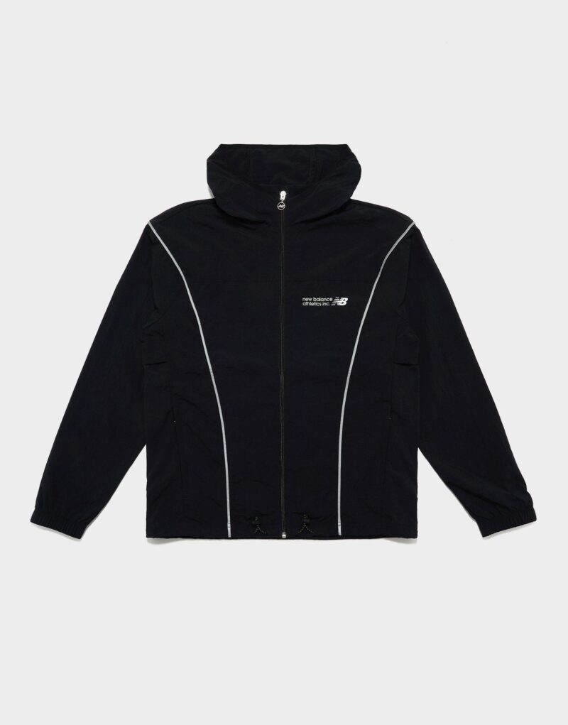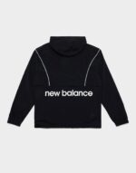 A lightweight. full-zip woven outer layer designed for active wear and everyday use. Constructed from durable polyknit fabric—likely a blend of recycled polyester and stretch fibers—it features NB DRY moisture-wicking technology to keep you dry. an adjustable hood with a three‑panel design. and a tall zip-up front for enhanced coverage. Elasticated cuffs and hem create a snug fit. while zippered or welt pockets safely store on-the-go essentials. Finished with a subtle rubber NB logo on the chest. this jacket blends performance-driven comfort with minimalist New Balance styling.