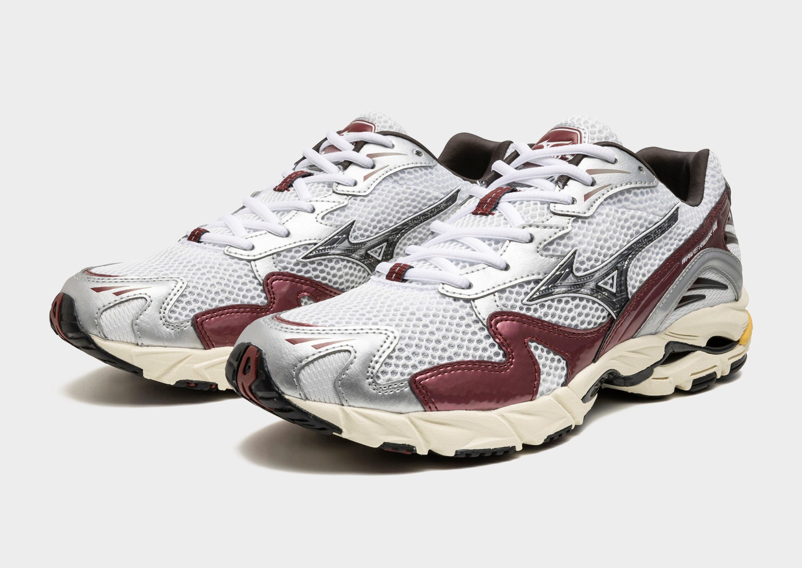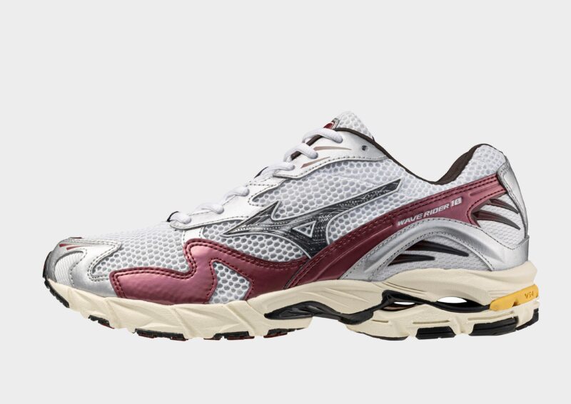 The Mizuno Wave Rider 10 blends retro ’90s runner aesthetics with modern technical design—featuring an upper of breathable AirMesh. suede overlays. and metallic silver accents for a sharp accentuated look. Underfoot. the proprietary Mizuno Wave plate offers balanced cushioning and stability. complemented by U4ic and U4icX midsole foams for lightweight. responsive comfort. Rubber X10 outsoles add durable traction in high-wear zones. while the Intercool ventilation system reduces heat buildup inside. Originally launched in 2007. this iteration celebrates both running heritage and refined sportstyle rhythm.